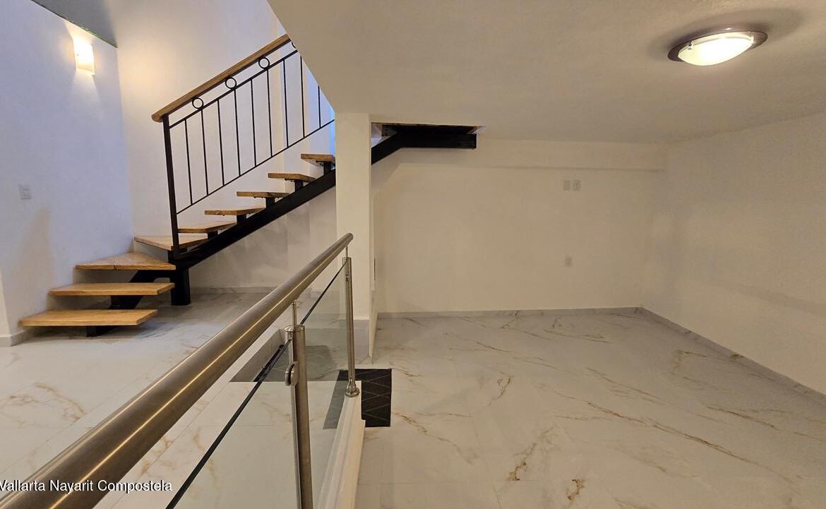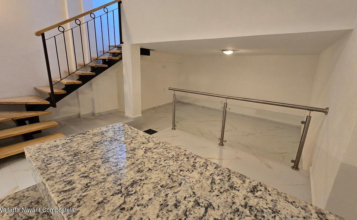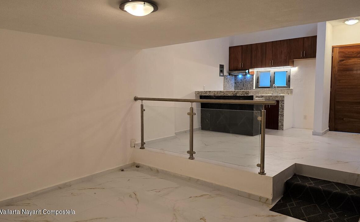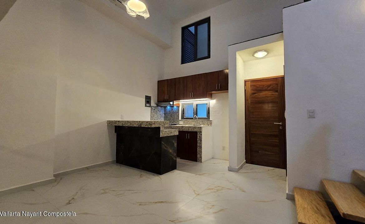 Departamento tipo loft en planta baja, ubicado en la colonia Emiliano Zapata de Puerto Vallarta, a pocas cuadras de la playa y el malecon. Cuenta con estancia de concepto abierto, cocina integral con barra, medio bano en planta baja, recamara principal en planta alta con closet y bano completo, ademas de segunda recamara o estudio con bano. Dispone de acabados modernos, carpinteria en parota, ventanales amplios y 2 aires acondicionados. El edificio ofrece seguridad y lavanderia comun.