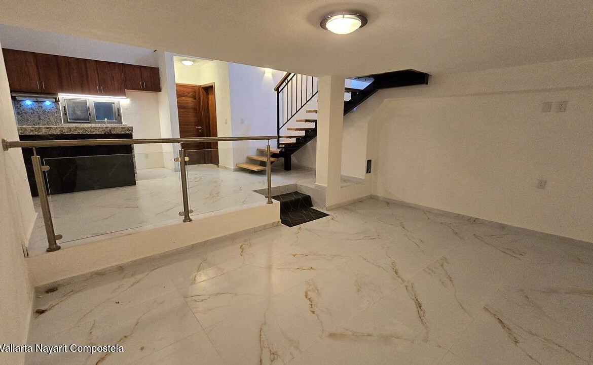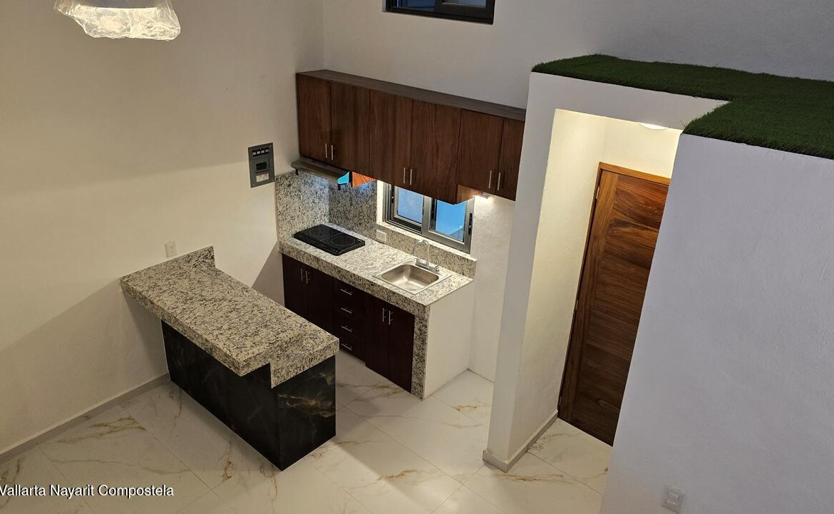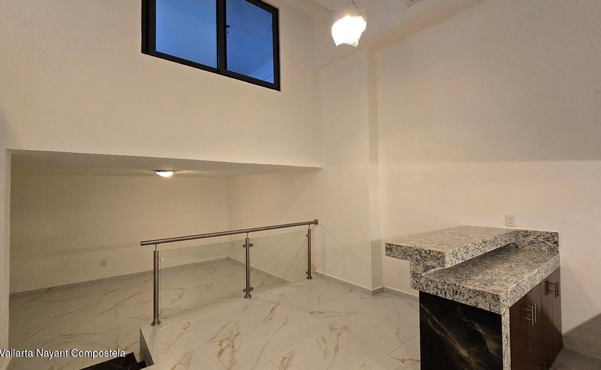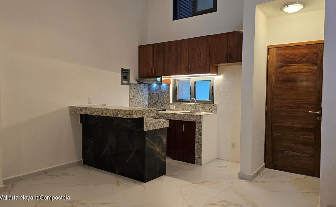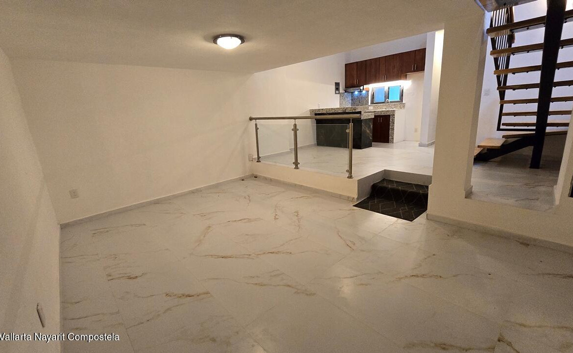 Departamento tipo loft en planta baja, ubicado en la colonia Emiliano Zapata de Puerto Vallarta, a pocas cuadras de la playa y el malecon. Cuenta con estancia de concepto abierto, cocina integral con barra, medio bano en planta baja, recamara principal en planta alta con closet y bano completo, ademas de segunda recamara o estudio con bano. Dispone de acabados modernos, carpinteria en parota, ventanales amplios y 2 aires acondicionados. El edificio ofrece seguridad y lavanderia comun.