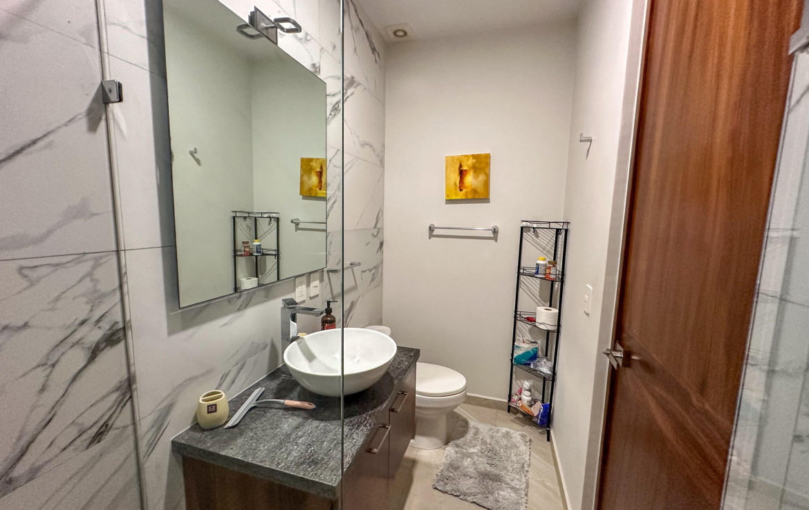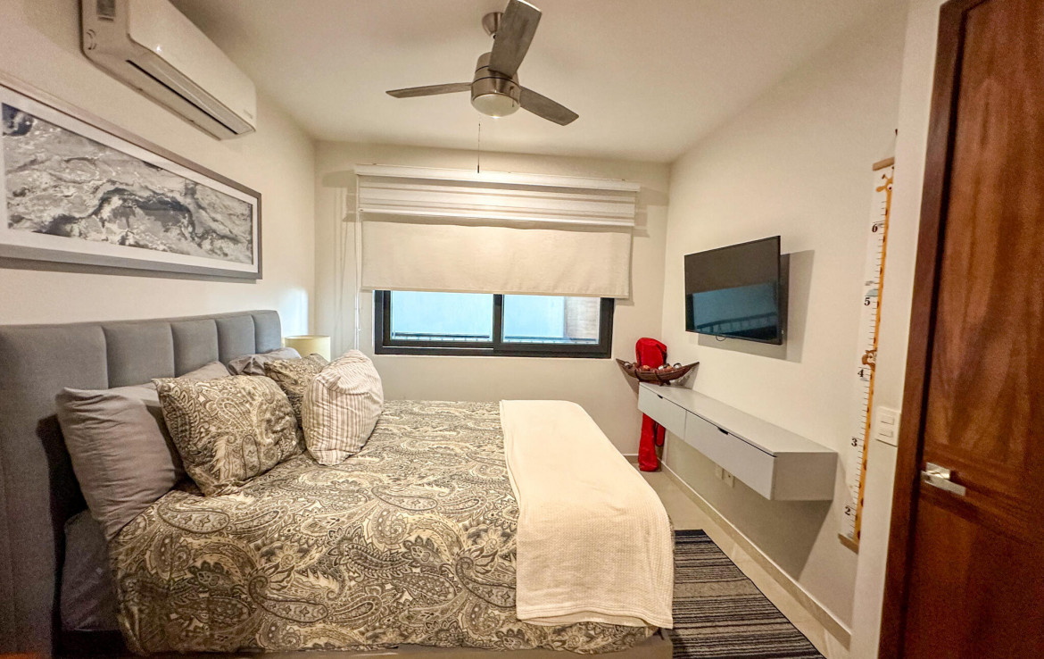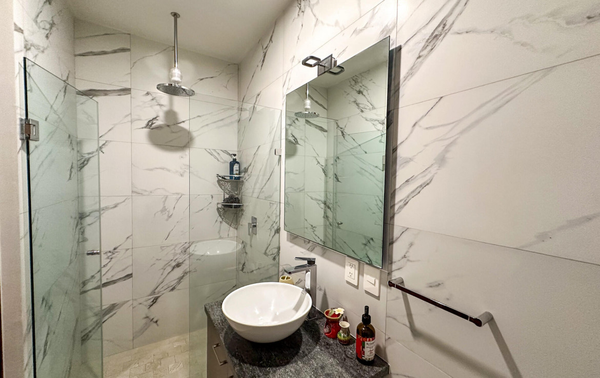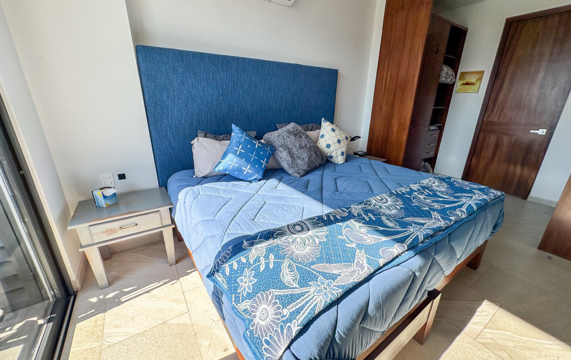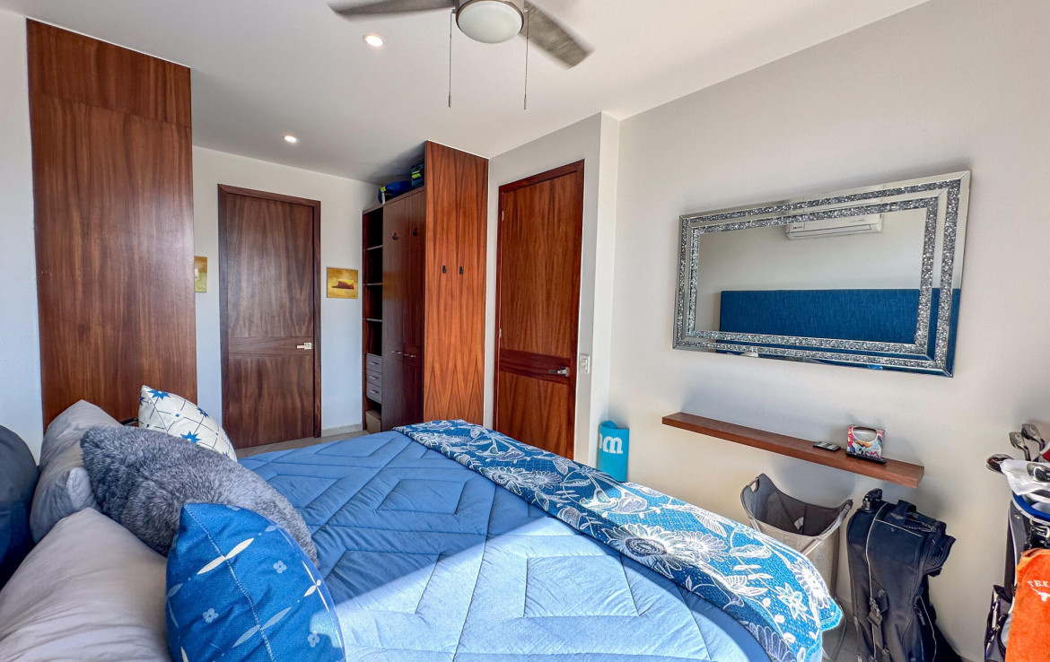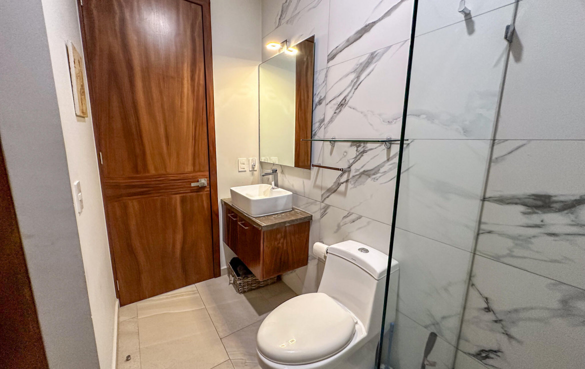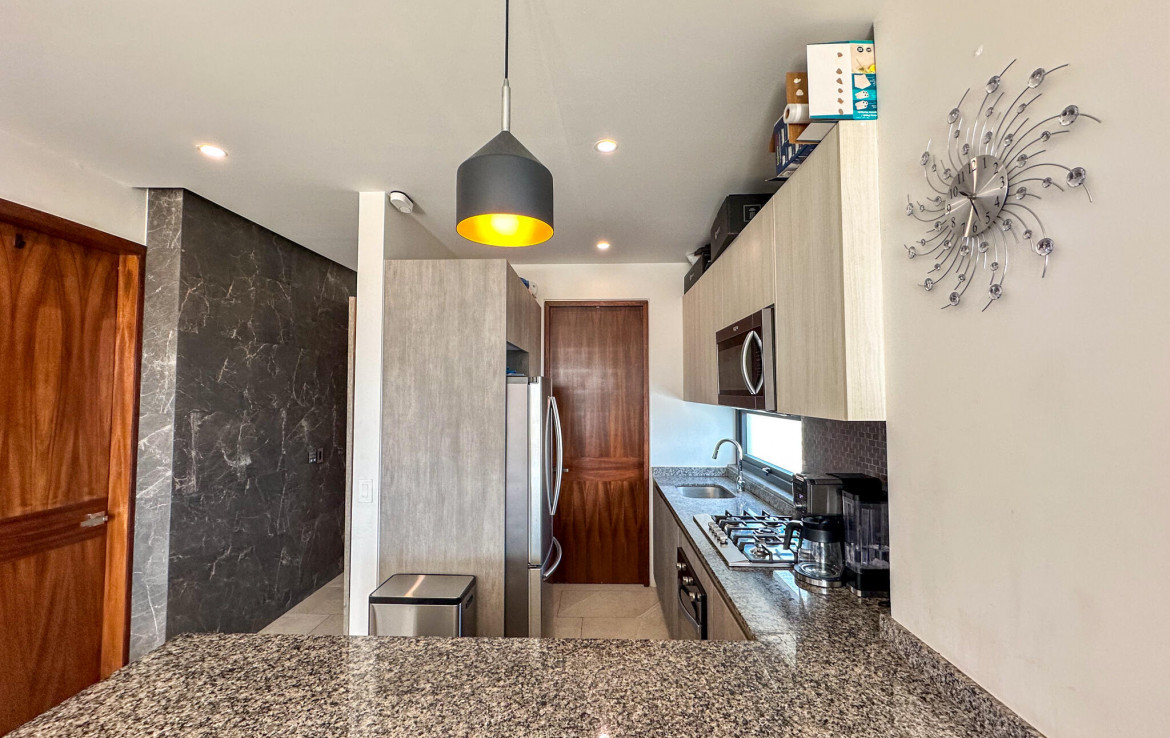 Descubre la mezcla perfecta entre lujo moderno y vida urbana en Punto Madeira, justo en el corazon de la Versalles, la colonia favorita de Puerto Vallarta. Este depa es puro estilo y luz; los espacios abiertos se iluminan increible gracias a sus enormes ventanales de piso a techo. Como puedes ver en las fotos, estas ventanas enmarcan unas vistas brutales de la Sierra Madre y la ciudad, creando el fondo perfecto para tu dia a dia. La vibra entre la sala y el comedor es super comoda, ideal tanto para relajarte en el sofa como para armar una cena con amigos, todo conectado a una cocina moderna que no solo se ve genial, sino que es super funcional.