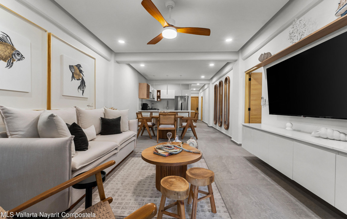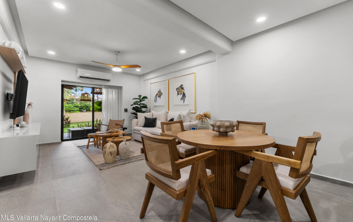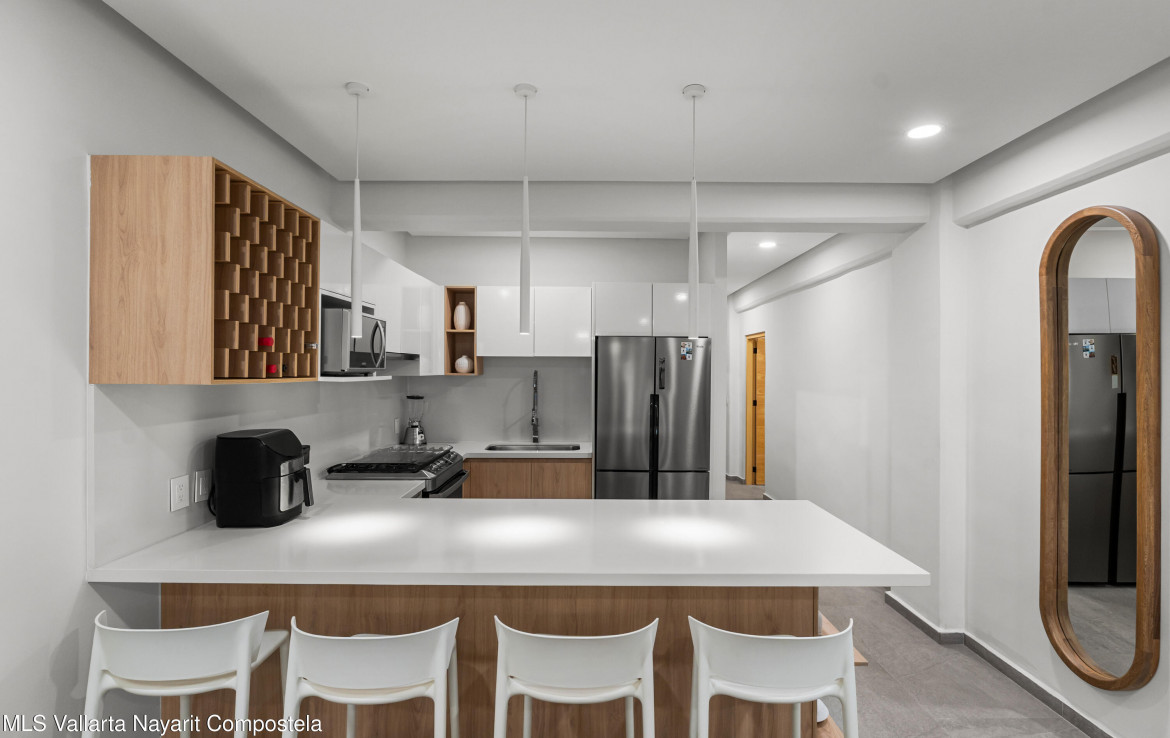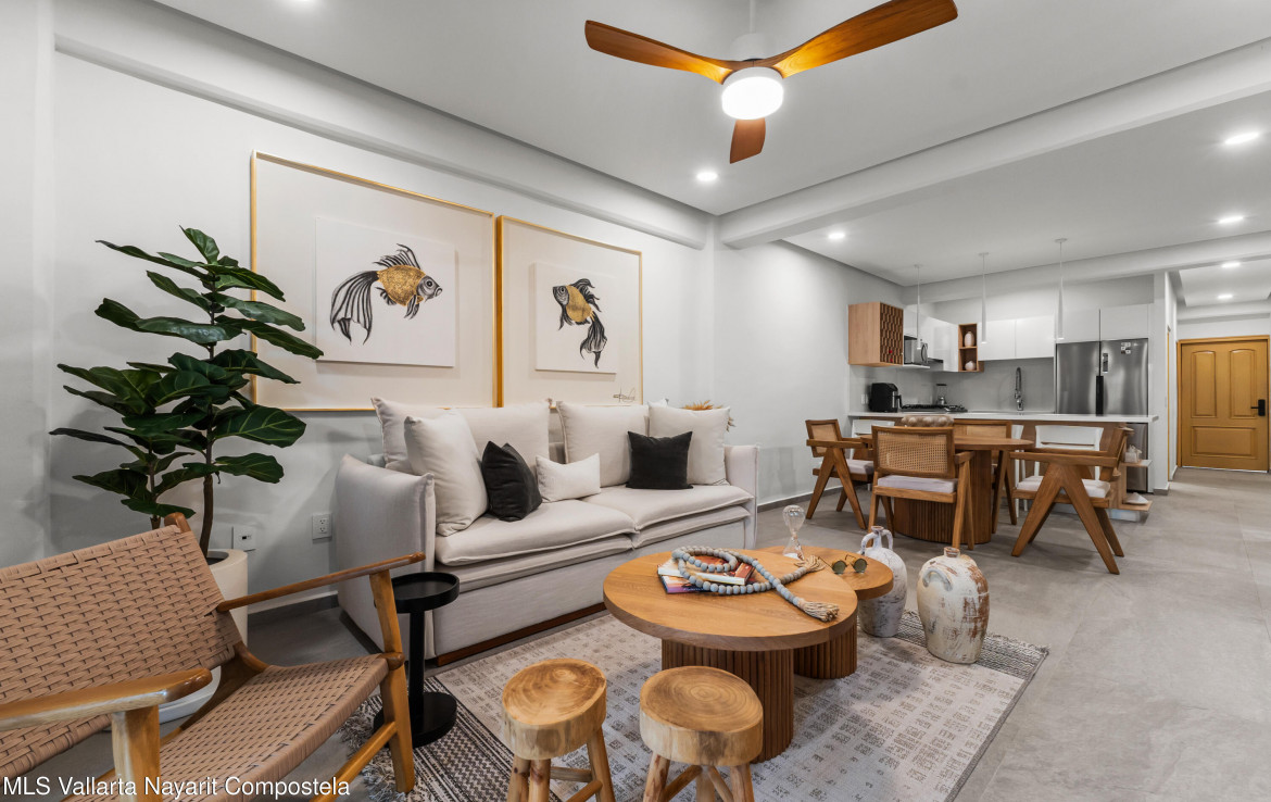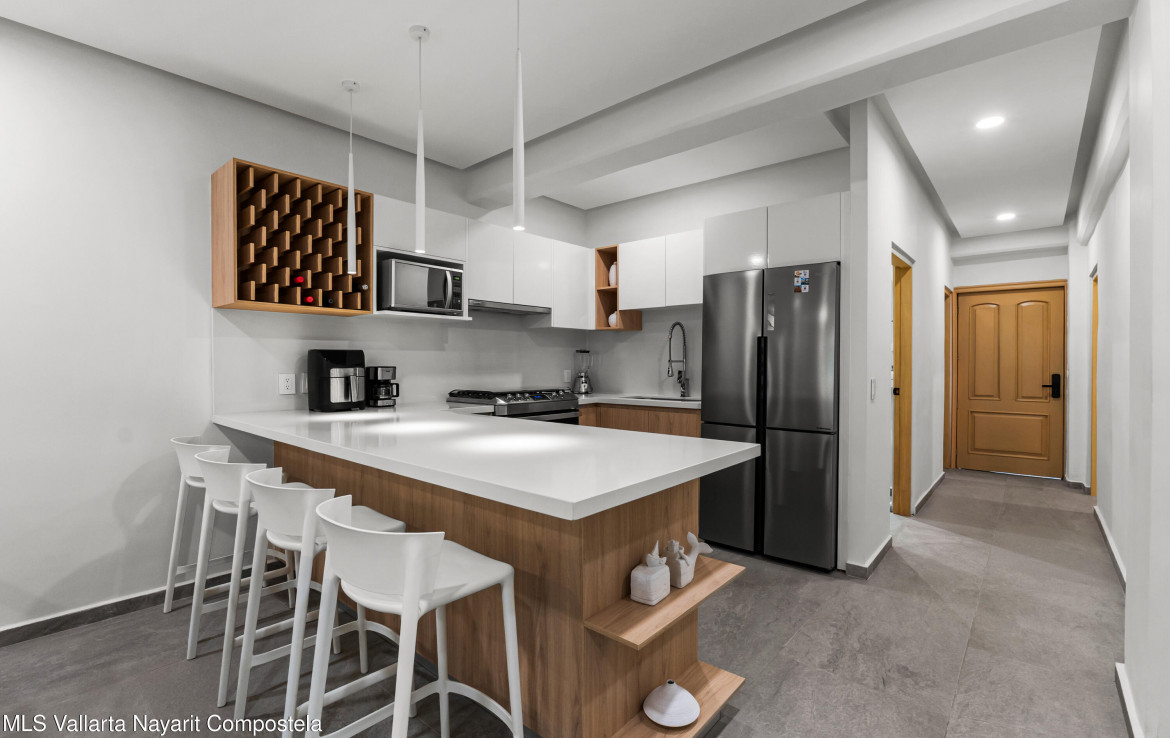 Exclusivo condominio completamente remodelado y lujosamente amueblado, ubicado en el corazon de Marina Vallarta. Cuenta con una amplia terraza con mesa de granito para 10 personas, piso nuevo y una agradable vista al jardin.Acceso doble: por la avenida principal y por el malecon de los yates. Rodeado de boutiques, comercios y restaurantes de alta gastronomia. A solo unos pasos de la playa y a minutos del aeropuerto. Exclusive, completely remodeled and luxuriously furnished condominium located in the heart of Marina Vallarta. It features a spacious terrace with a granite table for 10, new flooring, and a pleasant garden view.