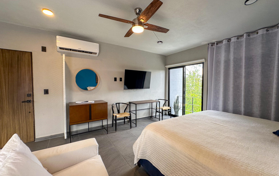 Condo Neem ubicado en el tercer nivel, esta completamente amueblado y cuenta con una terraza grande. Se encuentra a 9.1 KM del Aeropuerto.El condominio forma parte de una comunidad cerrada con seguridad las 24 horas y ofrece una amplia variedad de amenidades, incluyendo alberca, jardines comunes, gimnasio, parque para mascotas (pet park), canchas de tenis y area de juegos infantiles. La cuota de mantenimiento incluye seguridad 24/7, electricidad en areas comunes, mantenimiento de espacios compartidos y jardines, asi como el uso del gimnasio.