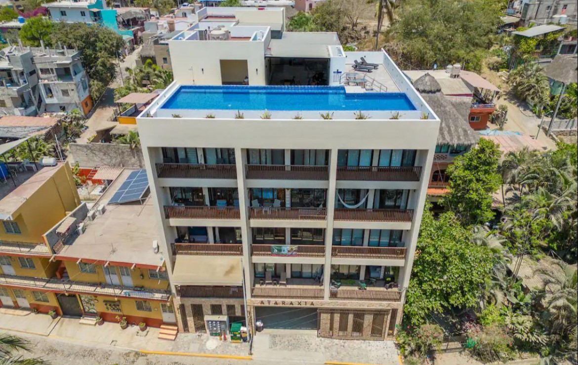 Descubre este hermoso condominio de 2 recamaras y 2 banos, ubicado en el vibrante centro de Sayulita, a solo unos pasos de la playa, bares con ambiente y reconocidos restaurantes locales. Disenado tanto para el confort como para la rentabilidad, esta propiedad representa una excelente oportunidad de inversion con alto potencial de ingresos por renta vacacional.La cocina esta elegantemente equipada con cubiertas de cuarzo, gabinetes de madera fina y un diseno de concepto abierto que combina a la perfeccion el estilo moderno con el encanto relajado de la vida costera. Ademas, cuenta con espacio de estacionamiento exclusivo para mayor comodidad.