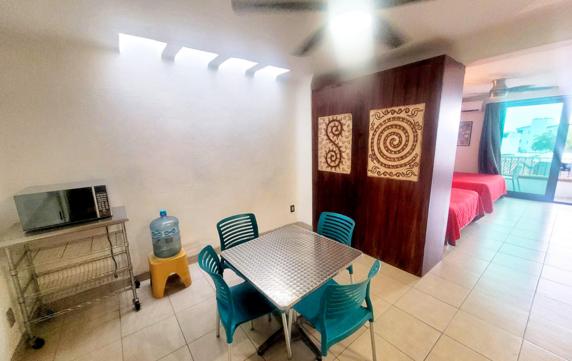 Ubicado en el segundo nivel del Flamingos Plaza, es una excelente opcion para quienes buscan comodidad y funcionalidad en una zona estrategica. A solo 120 metros de la playa, este espacio ofrece una estancia iluminada, area de comedor con mesa y cuatro sillas, cocineta equipada con estufa de gas y refrigerador, asi como un bano completo. Ademas, dispone de dos camas, closet integrado, aire acondicionado y dos ventiladores de techo, garantizando un ambiente fresco y confortable. Su balcon ofrece una agradable vista a la calle oeste, permitiendo disfrutar del entorno urbano.Su ubicacion privilegiada, combina accesibilidad con una gran calidad de vida. No pierdas la oportunidad de conocerla y hacerla tuya!