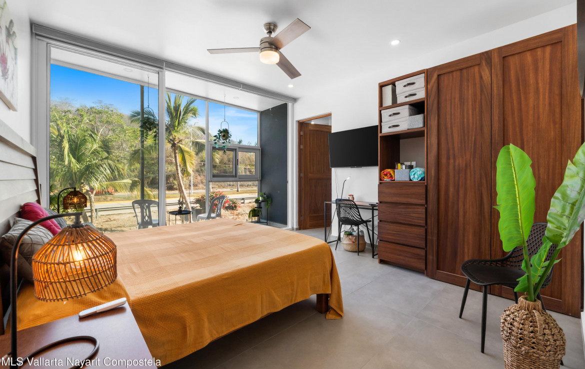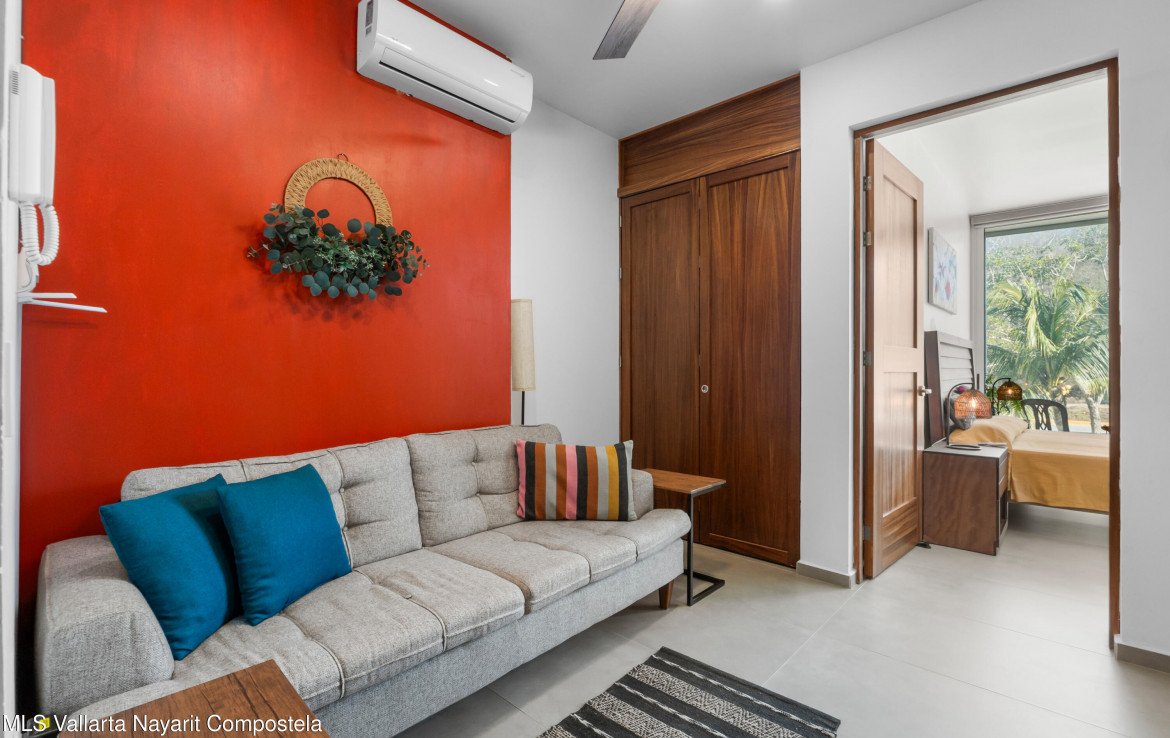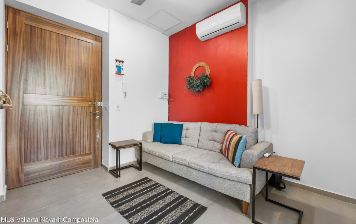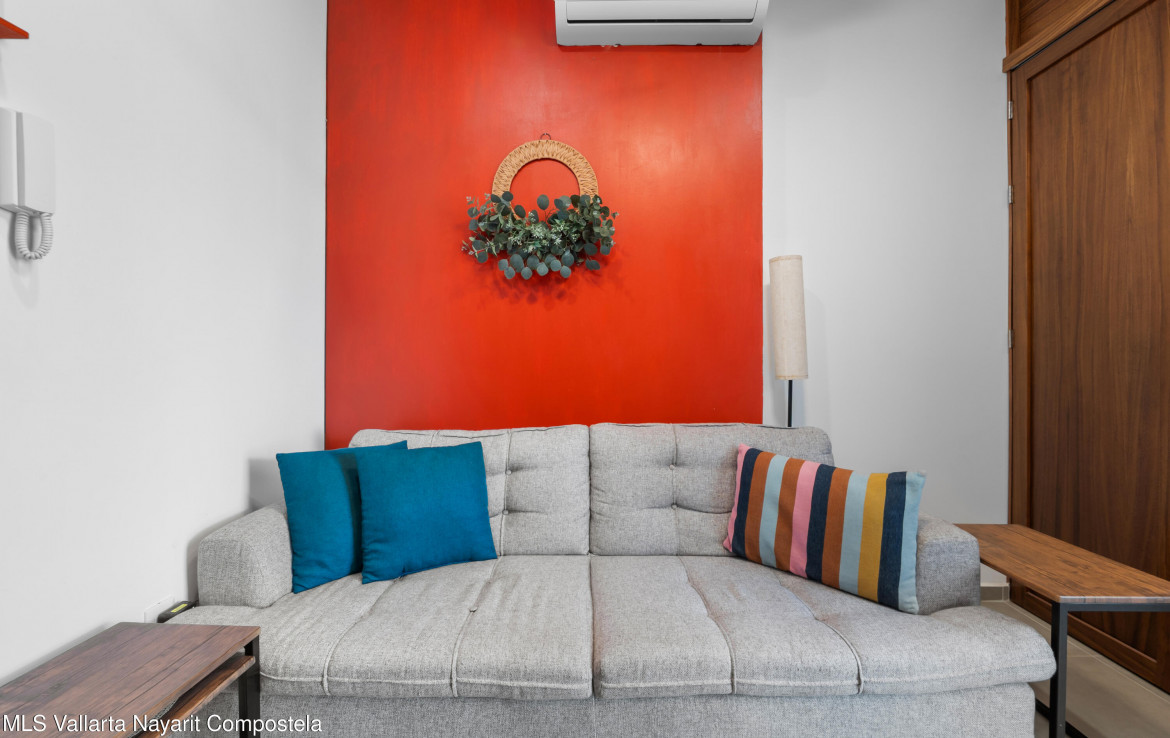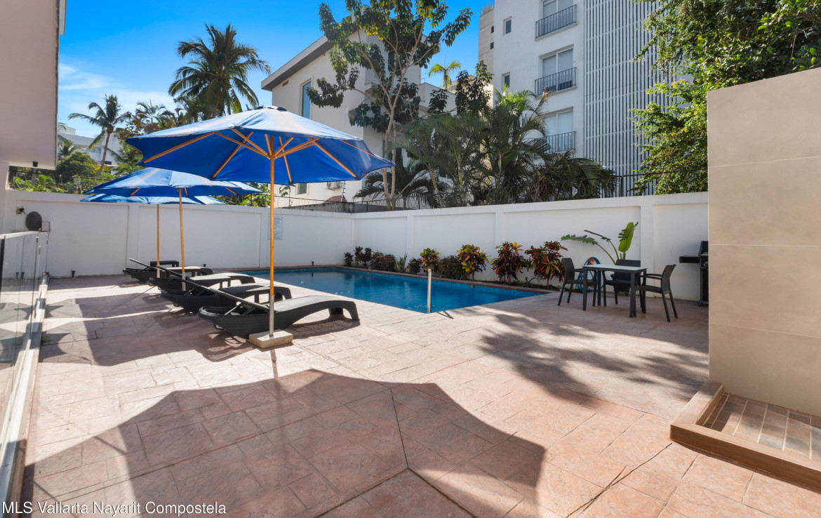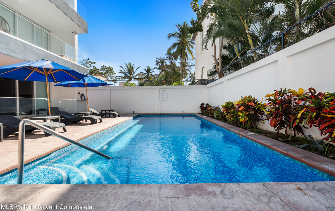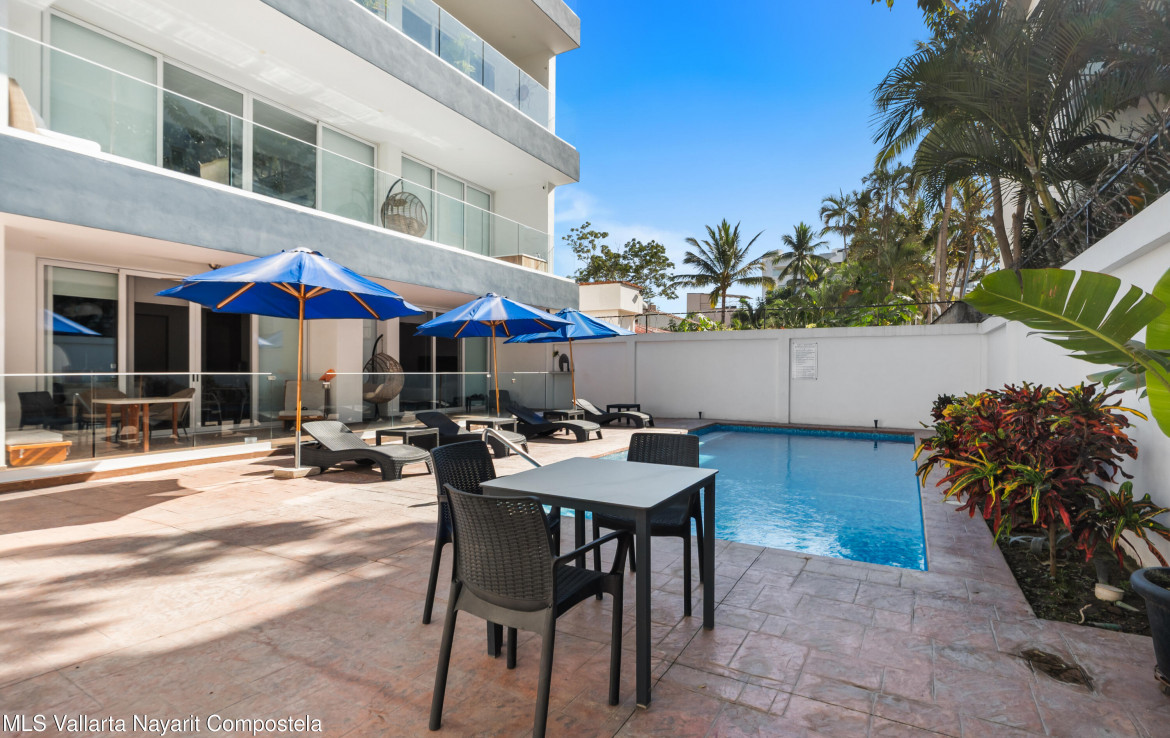 Modern 1BR condo in Santa Lucia, a five story boutique building with just one furnished unit per floor. Located one block from the beach, it is ideal as a full time residence or rental investment. The heated pool and BBQ area create a relaxed common space, plus solar panels for added efficiency. Inside you will find TV, microwave, 2 A/C units, washer, water filter, couch and bed included. Extras feature 7 private solar panels, purified water system, security box, and triple glass covered balcony for comfort and quiet living.