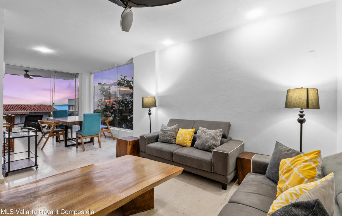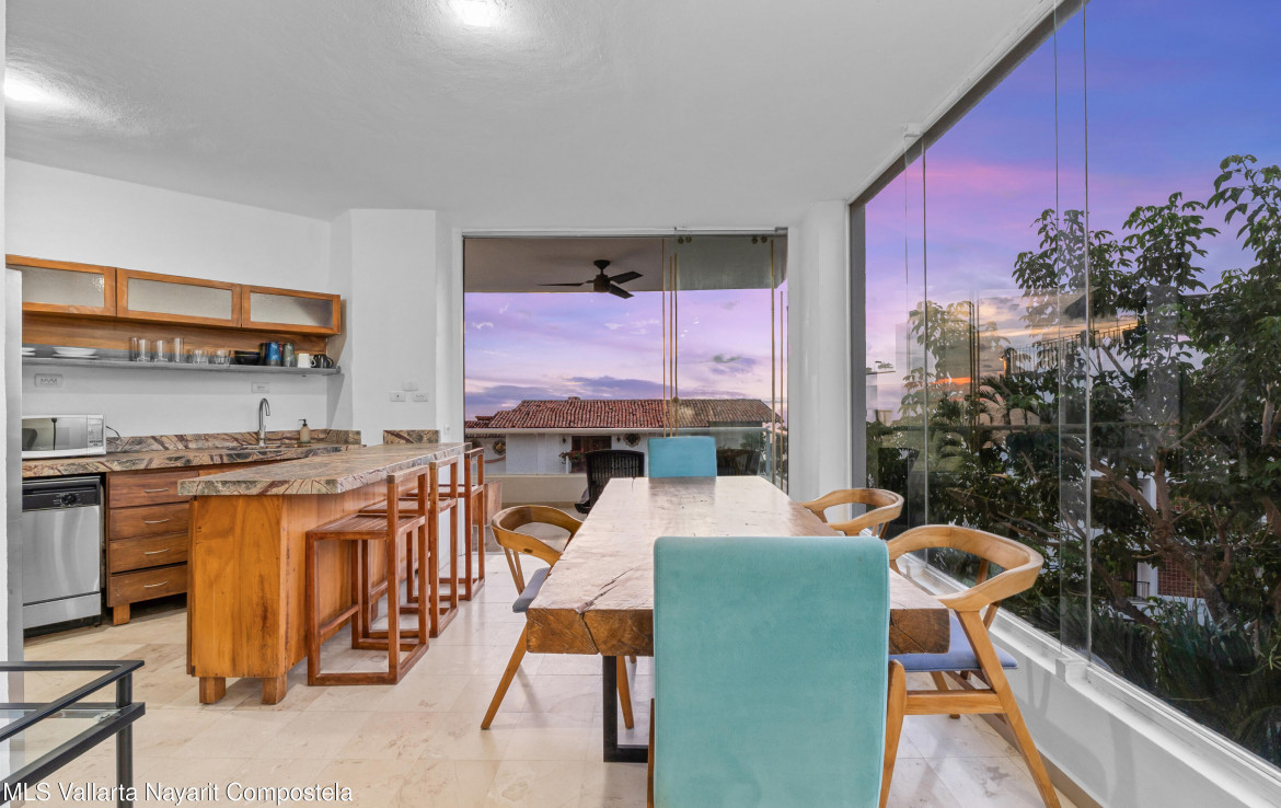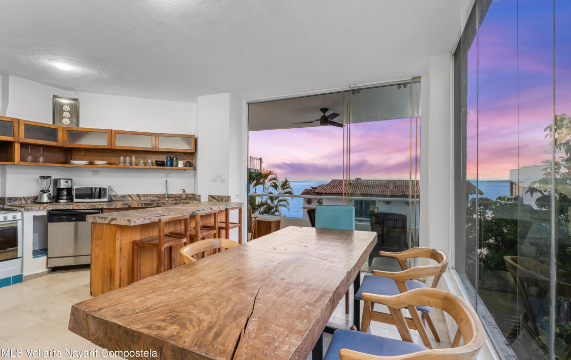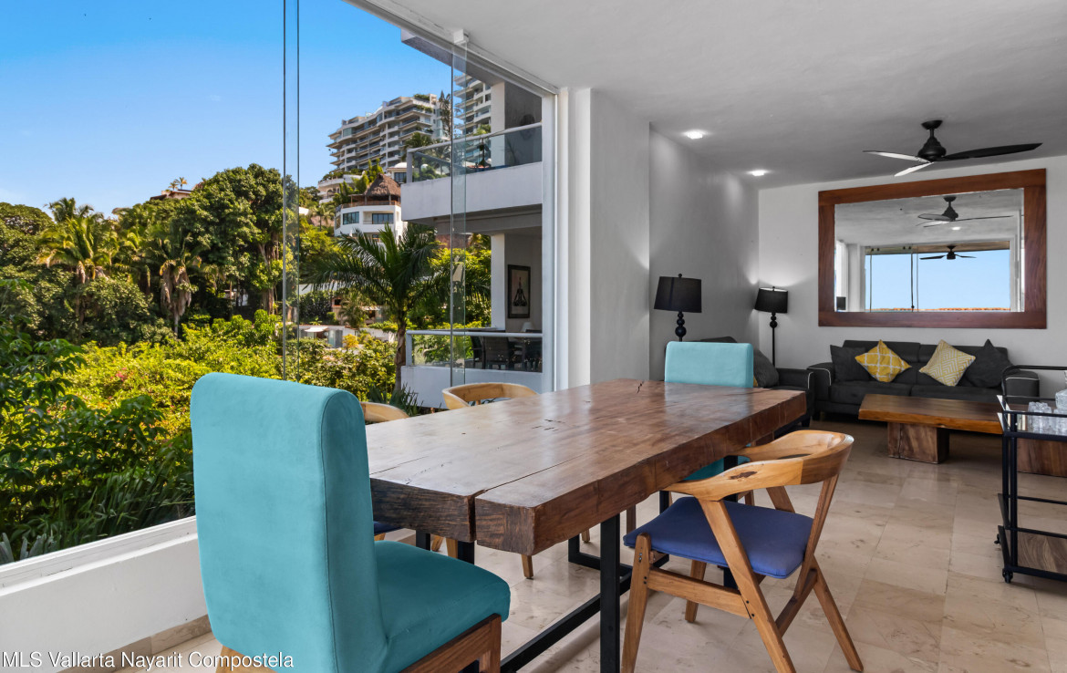 Spanish:Unidad 203 – Este espectacular condominio de 2 recamaras y 2 banos en Las Penas de Teresa ofrece vistas impresionantes y un amplio patio con un diseno encantador. Ubicado en la exclusiva zona de Amapas, combina privacidad, confort y el autentico estilo de vida de Puerto Vallarta.English:Experience the beauty of Puerto Vallarta from this stunning 2-bedroom, 2-bathroom condo at Las Penas de Teresa. Nestled in the exclusive Amapas hillside, it offers tranquility and easy access to the Romantic Zone. The highlight is a spacious patio where the Pacific sparkles beyond Vallarta’s iconic red-tile rooftops–your postcard view, every day.