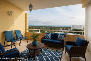 Departamento en Aria OceanUnidad confortable ubicada en el complejo Aria Ocean en Nuevo Nayarit, localizada en la torre 3 en planta baja. Este complejo tipo turistico te ofrece distintas actividades al aire libre asi como las increibles playas Nayaritas. Amenidades: – Control de acceso y video vigilancia – Estacionamiento – Lobby – Areas verdes – Cuerpos de agua de ornamenta – Restaurante y snacks – Asoleaderos y camastros – Piscinas – Acceso a playa Caracteristicas de la unidadDepartamento con maxima privacidad ofreciendo un ambiente fresco e iluminado naturalmente debido a su gran terraza privada. Cuenta con:- 2 Habitaciones – 2 Banos completos – Sala – Comedor – Cocina con barra – Area de servicio – Terrazas privada