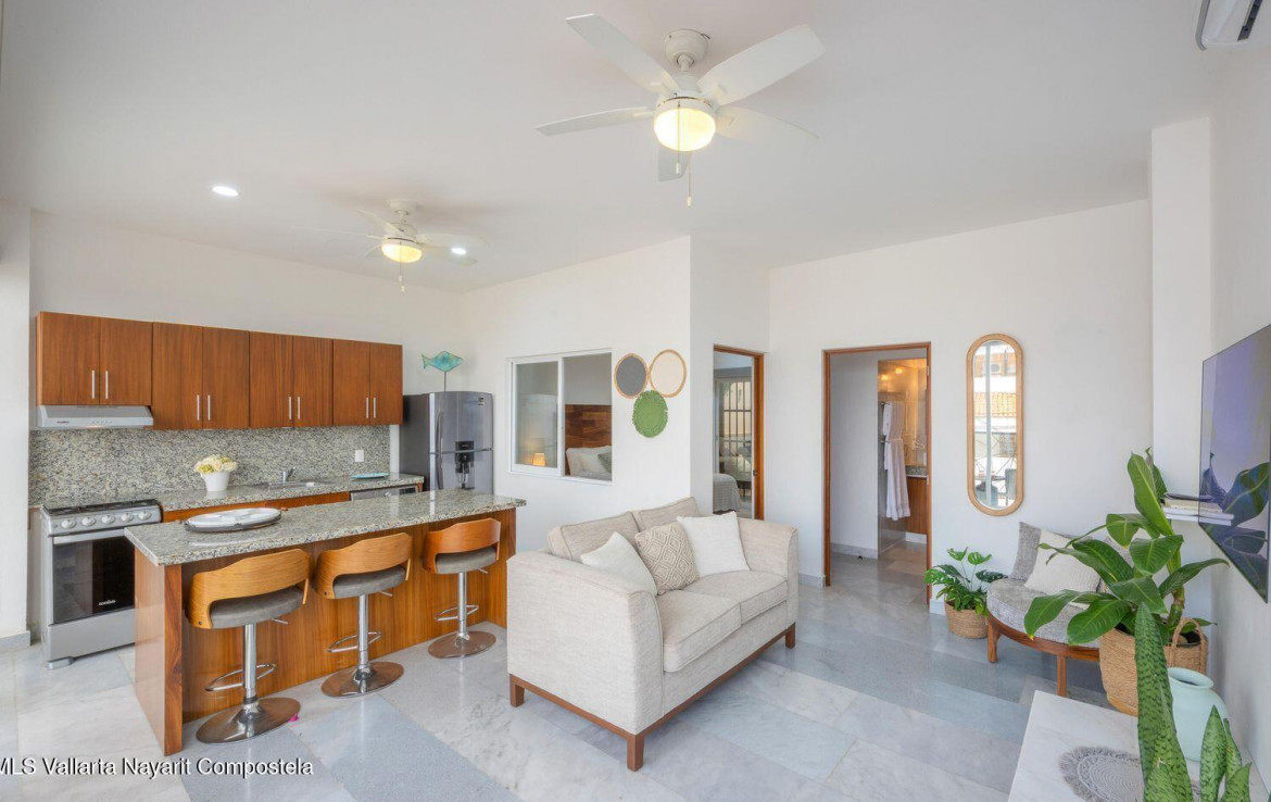 Bienvenido a Nicaragua 522 un hermoso condominio moderno con acabados residenciales, de 1 recamara con opcion a una segunda recamara en patio/terraza interior, 1 bano completo, ubicado en segundo piso. Con 78 m2 metros cuadrados de espacio habitable y estacionamiento flotante.La torre cuenta con amenidades como roof top con terraza y asoleaderos en ultimo piso con vistas espectaculares a mar y Puerto Vallarta y a los cerros. Perfecto para vivir en zona centro/malecon/romantica como propiedad vacacional o excelente oportunidad de inversion para recibir rentas cortas o anuales y excelente plusvalia en los proximos anos.PRECIO EN PESOS