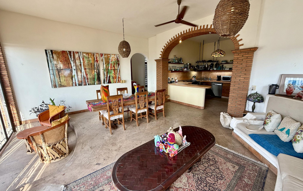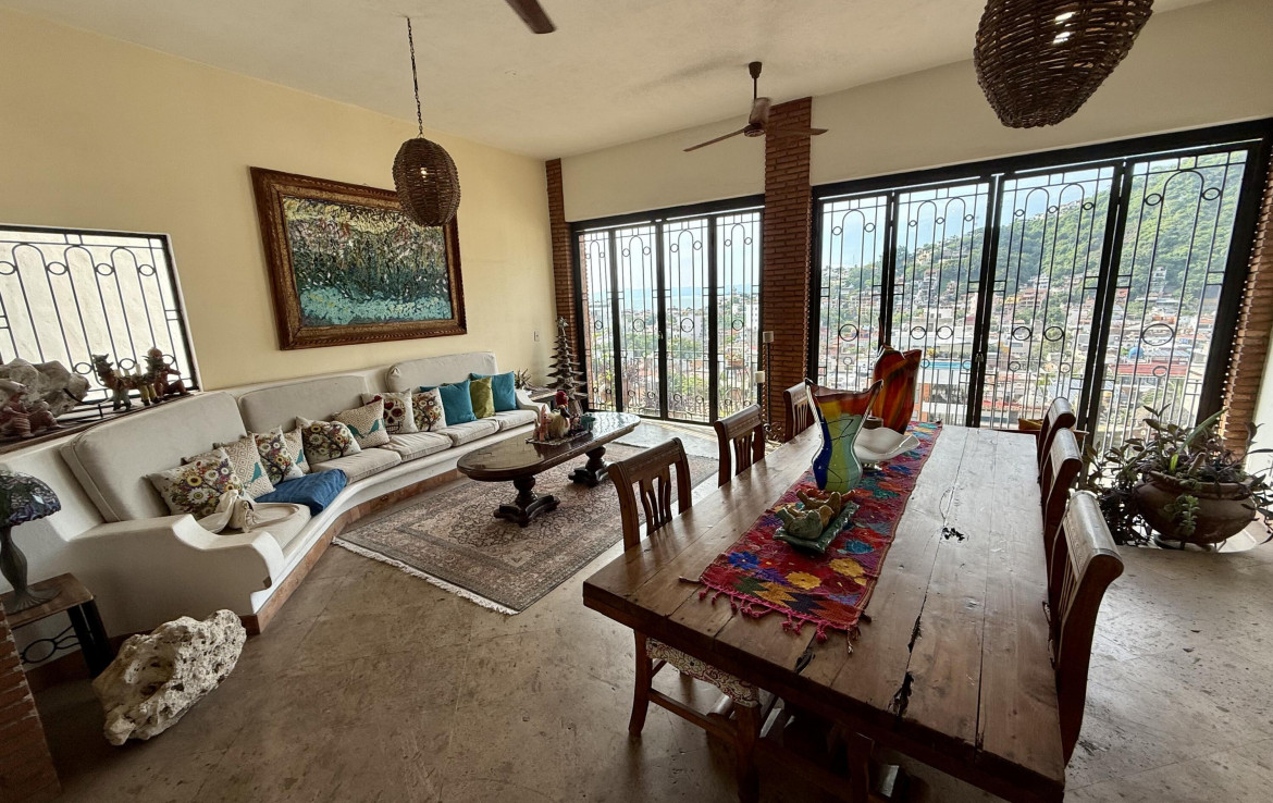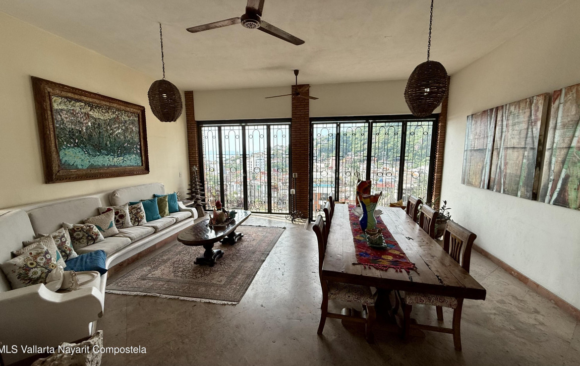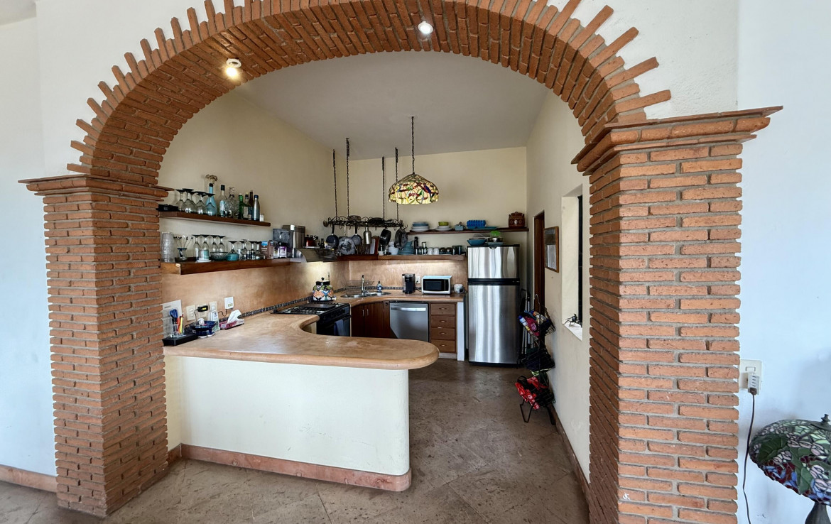 Stunning multi-level Mexican Style galore condo in Condominios Zodiaco. Only 10 units in the development. This three bedroom unit has incredible views from every room and every floor. A sweeping staircase to the upstairs bedrooms greets you in the foyer. A private rooftop gives you and your guests panoramic views of the mountains, city and town. The unit is finished out with Cantera stone floors, brick arches and Mexican tiles.