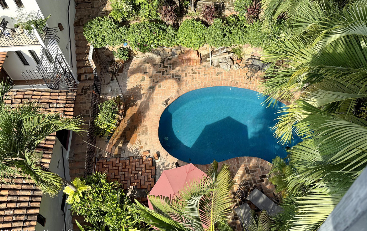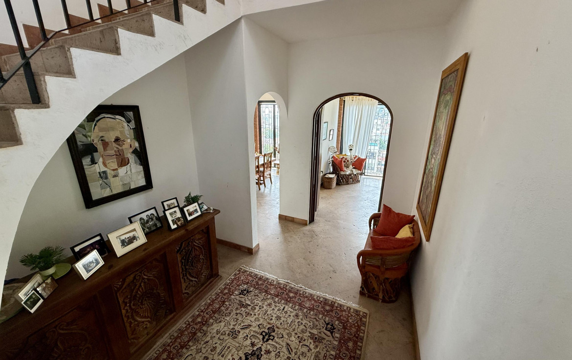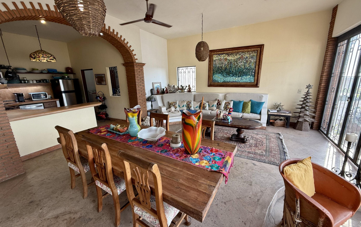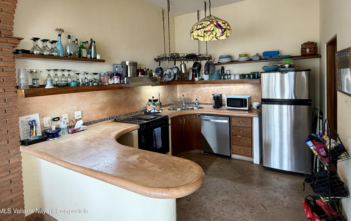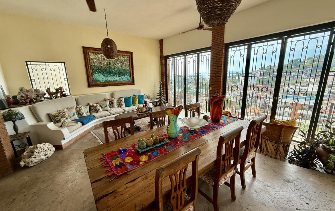 Stunning multi-level Mexican Style galore condo in Condominios Zodiaco. Only 10 units in the development. This three bedroom unit has incredible views from every room and every floor. A sweeping staircase to the upstairs bedrooms greets you in the foyer. A private rooftop gives you and your guests panoramic views of the mountains, city and town. The unit is finished out with Cantera stone floors, brick arches and Mexican tiles.