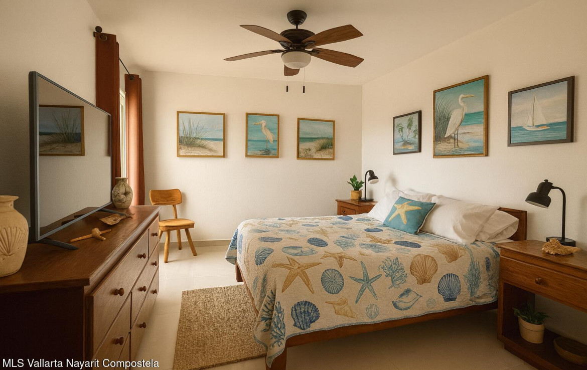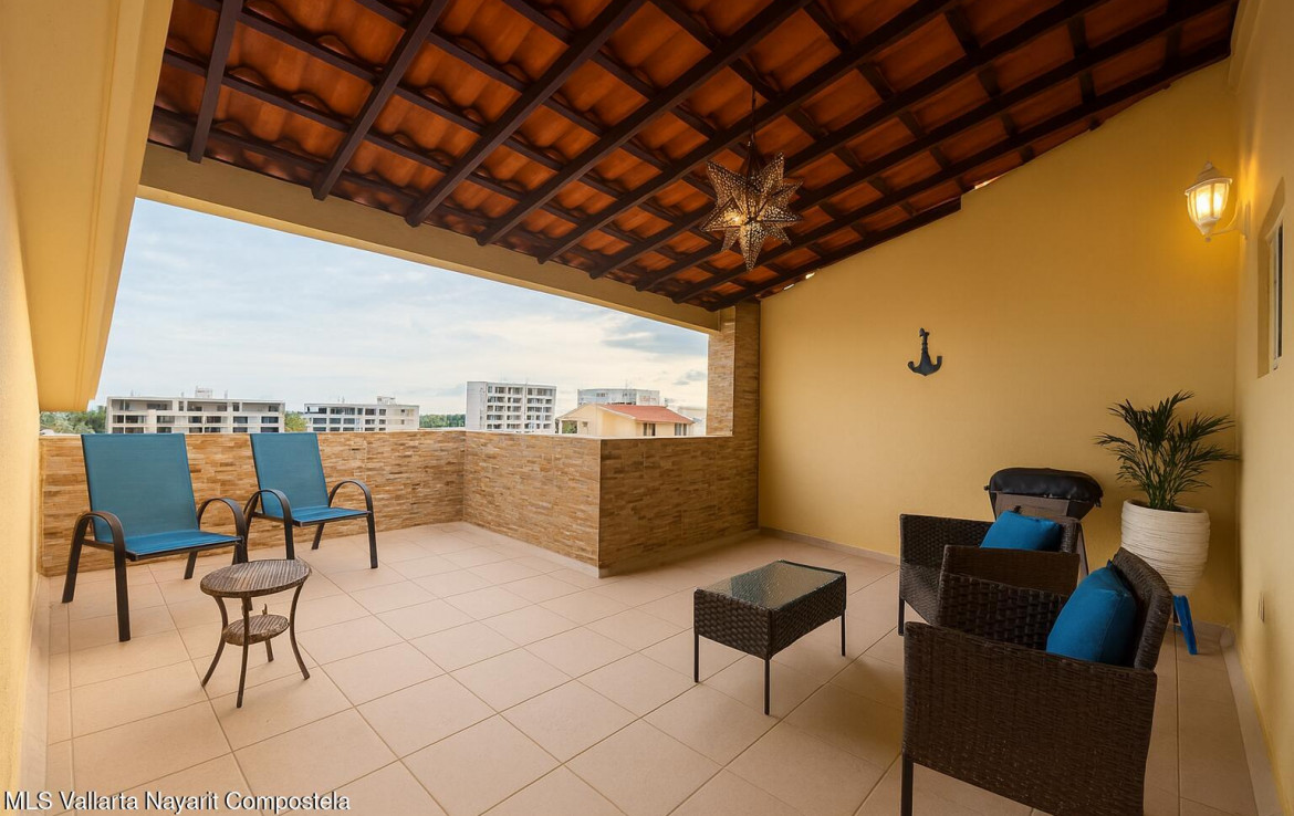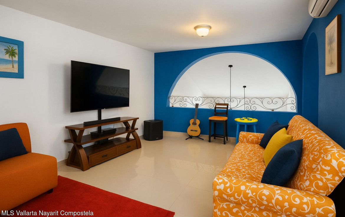 ENGLISH BELOW…Bienvenido al Penthouse 72 en Condominio Orquideas, parte del exclusivo Coto Los Sauces Flamingos Club Residencial en Bahia de Banderas, Nayarit. Esta vibrante comunidad privada es reconocida por su seguridad 24/7, ambiente familiar y amenidades de estilo resort — todo con sorprendentemente bajas cuotas de mantenimiento (HOA) e impuestos prediales.Distribuido en dos niveles con 214 m de espacio interior + 24 estacionamiento privado, este penthouse se siente mas como una casa que como un condominio.En la planta baja encontraras un diseno abierto y luminoso con amplia sala y comedor, cocina moderna, cuarto de lavado y una terraza soleada perfecta para el cafe de la manana. Este nivel tambien incluye una recamara con visitas.
