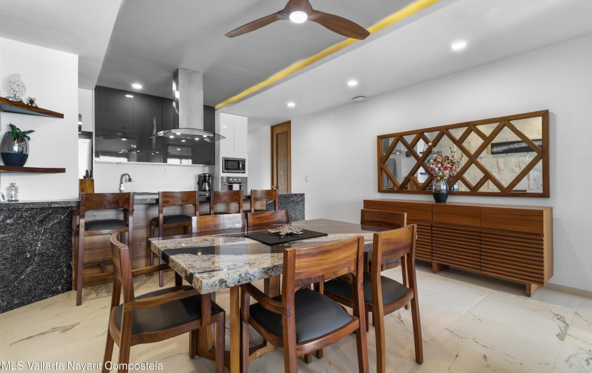 Charming 2-Bedroom, 2-Bathroom Condo with Ocean Views in Cruz de Mar – La Cruz de HuanacaxtleStep into relaxed elegance in this fully furnished 2-bedroom, 2-bathroom condo just a block and a half from the beach and marina in the heart of La Cruz de Huanacaxtle. Located in the boutique Cruz de Mar complex, this residence features a spacious private terrace with beautiful ocean views perfect for enjoying peaceful sunrises and gentle sea breezes. The open-concept layout includes a fully equipped kitchen, inviting living and dining areas, and tasteful furnishings throughout. Both bedrooms are comfortably sized, and the bathrooms are modern and well designed.Cruz de Mar offers a great selection of amenities, including a heated ground-floor swimming pool with an outdoor kitchen and