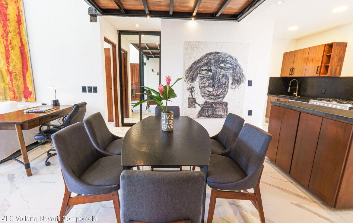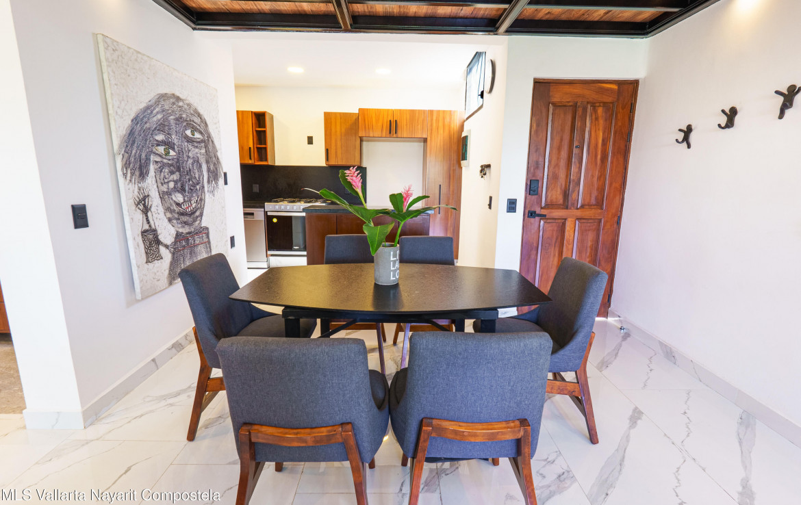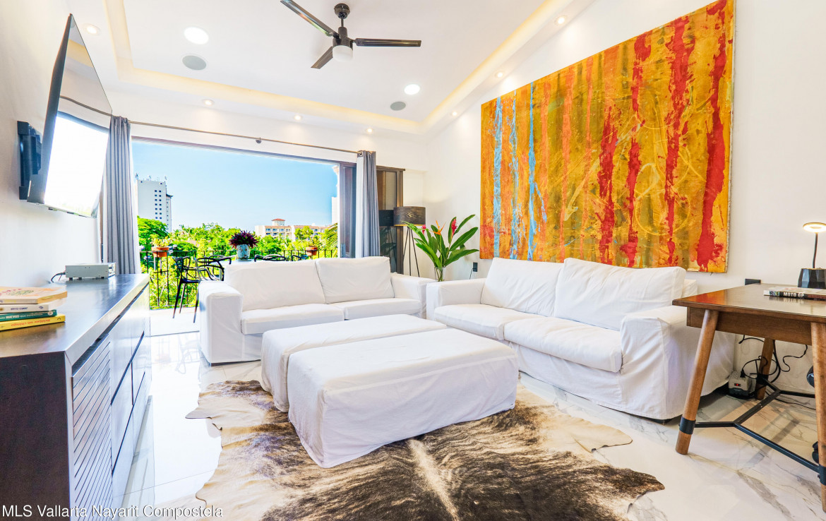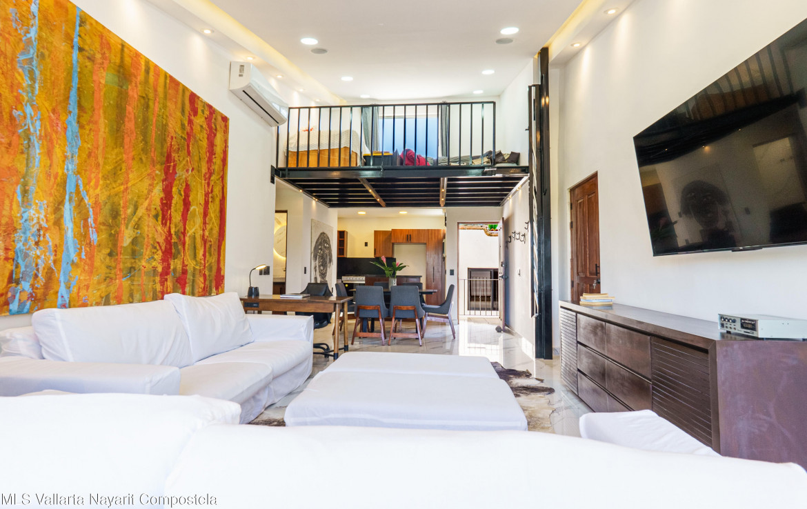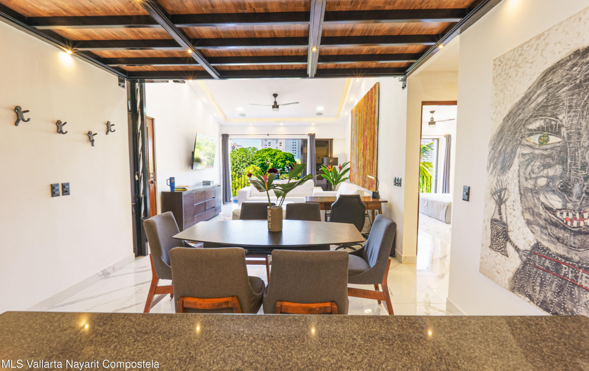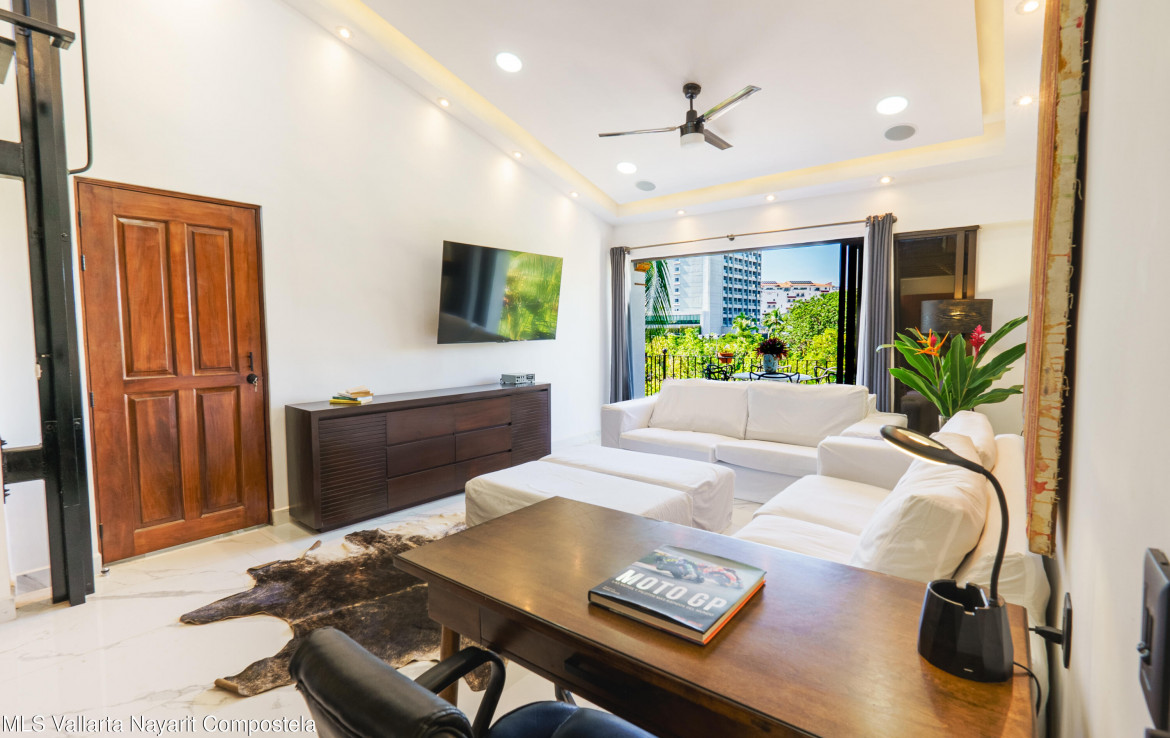 ENGLISH BELOWEste increible departamento recientemente remodelado al 100%, cuenta con un diseno lock-off (2 entradas independientes con 1 puerta interior que los comunica) que lo hace ideal para quienes buscan flexibilidad y rentabilidad. Incluye un estudio con entrada independiente y bano completo con tina con hidromasaje y regadera tipo lluvia, ademas tiene una cocineta que lo hacen perfecto para rentas o visitas. El estudio tiene una vista muy agradable hacia la gran arboleda que esta al frente, asi como hacia las montanas hacia el sur de PV. Tiene casi doble altura ya que tiene techo a un agua, ademas de un ventanal tipo balcon que le da al departamento una gran ventilacion, asi como gran iluminacion natural.