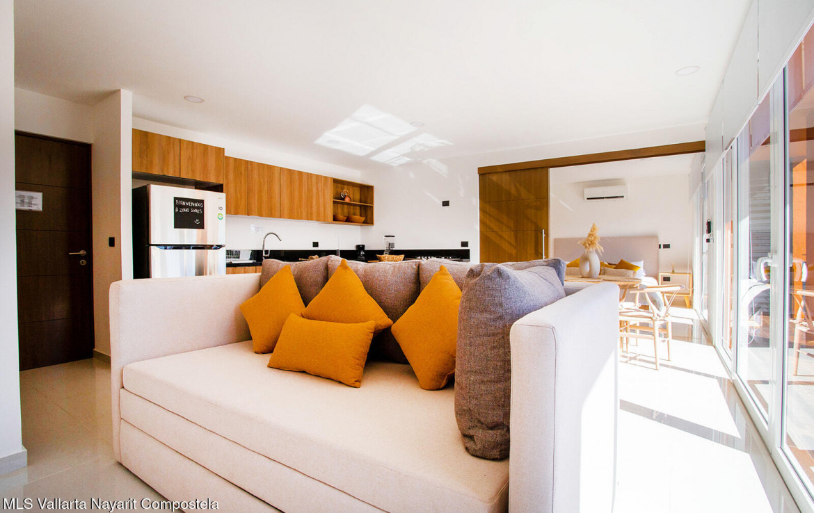 Departamento en venta con excelente historial de rentas, ubicado en un moderno complejo residencial a pocos minutos de la playa. La unidad cuenta con 68.65 m, 1 recamara, 1 bano completo, sala-comedor, cocina totalmente equipada y amplia terraza con vistas a la montana, bahia y ciudad.El desarrollo ofrece seguridad 24 horas, acceso controlado, lobby, elevador, alberca, jacuzzi, gimnasio, boxing studio, centro de negocios, area de eventos, ludoteca, area de juegos acuaticos infantiles y dos salas de cine.Ideal para inversion o uso residencial, en una zona con alta demanda y cercania a tiendas de auto servicio y entretenimiento.