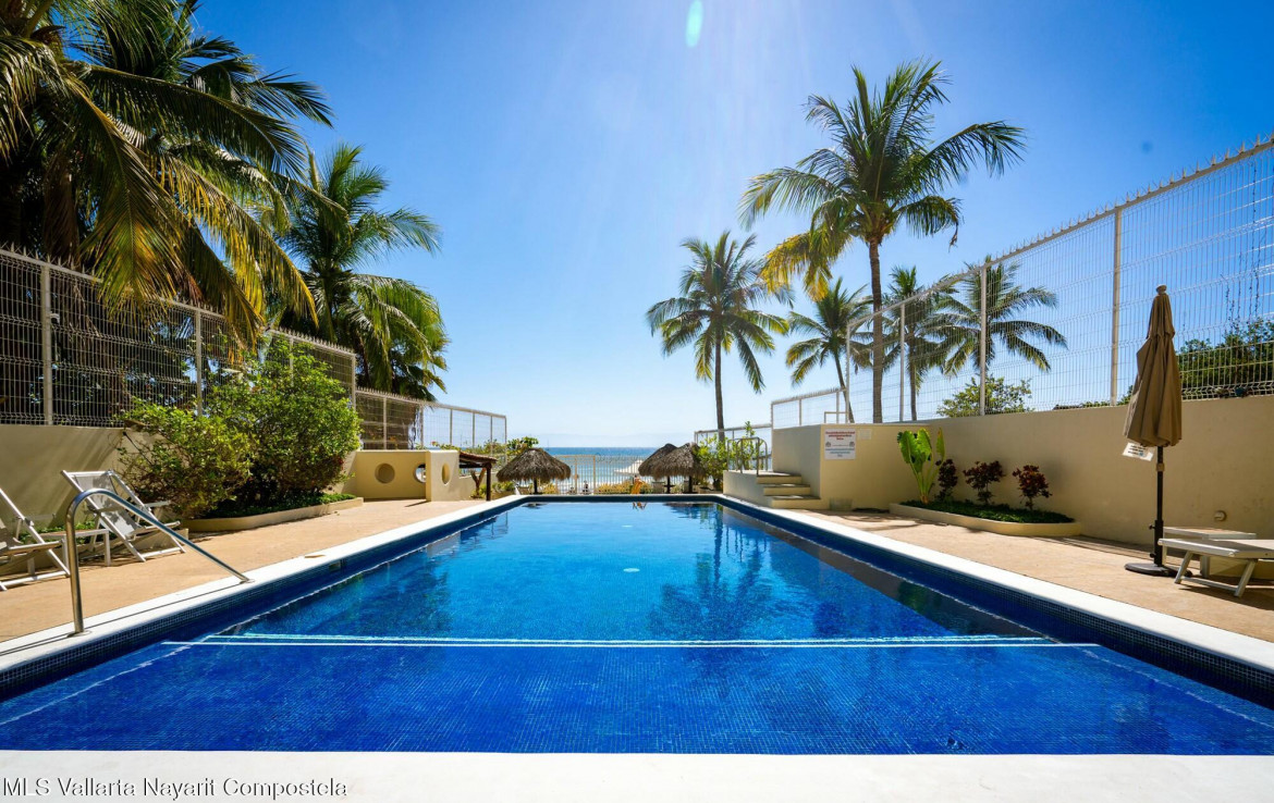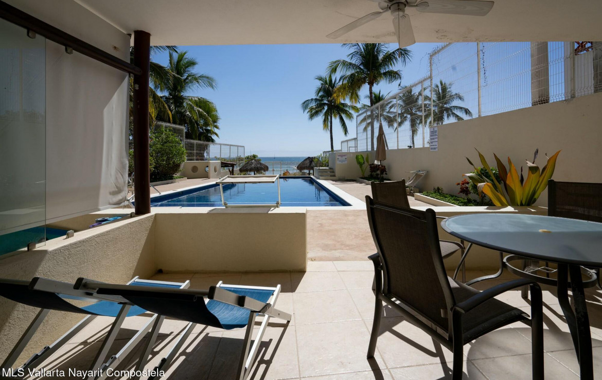 Best entry price for a condo on the beach in Punta de Mita.This great 2 bedrooms, 2 bath condo, is the perfect entry price for a condo in Punta de Mita.This ground floor unit leads you right to the sandy beach and one of the best surfing spot in the area. The condo also has some great rentals due to the location, also walking distance to the restaurants and shops.