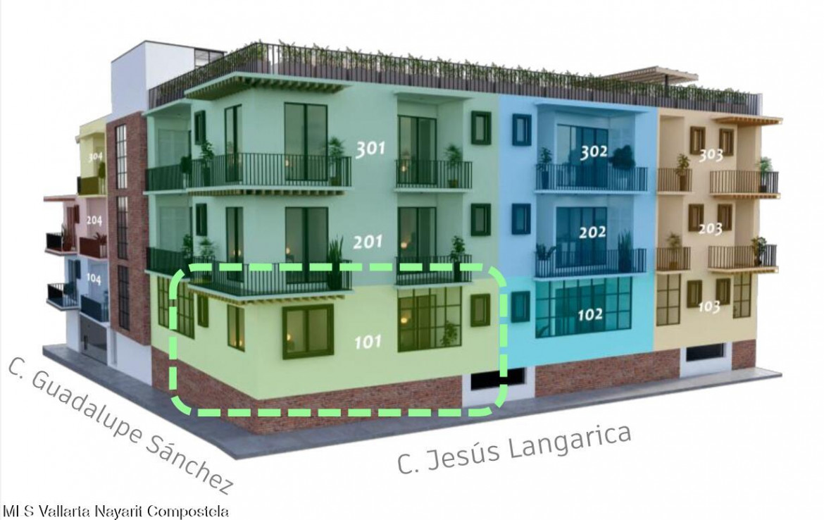 Prime location in the heart of the city, surrounded by the best restaurants, galleries, entertainment venues, spas, craft shops, and just steps from the beach.Encanto Vallarta is an exclusive project with only 17 units on three levels. It is architecturally designed to enhance the traditional charm of one of Puerto Vallarta’s most desirable neighborhoods, EL CENTRO. Only 7 units left. Take advantage of pre-construction savings.The project is 75% complete and is ideal for to digital nomads, snowbirds or investors who want to generate income given its amazing rental potential.Elevator, indoor parking, storage, common areas with a bar, lounge chairs, and a pool. The developer, Panorama PV, has an excellent track record and several successful projects in the region.