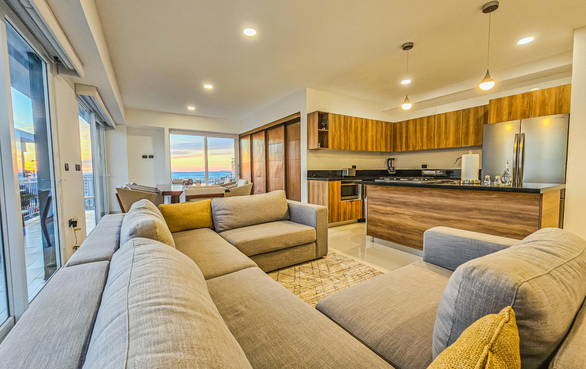 Welcome to your dream home at Zoho Skies, where luxury meets breathtaking views. Enjoy daily vistas of the majestic mountains to the east and the Pacific Ocean to the west, with city lights creating a sparkling tapestry at night. Walls of windows flood the space with natural light, creating an open, luminous atmosphere throughout the home. Relax with an infinity pool overlooking the ocean, a yoga studio, cinema, children’s play area, and fitness area. Work seamlessly with high-speed internet in designated areas. Conveniently located on the main avenue, just 20 minutes from the airport and 30 minutes from downtown Puerto Vallarta.This exclusive condo offers comfort, convenience, and style. Contact us today to make it yours!