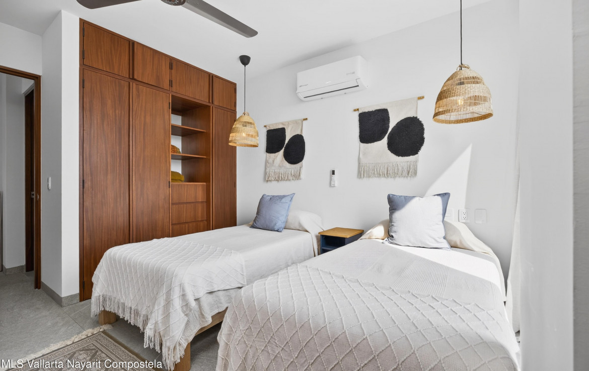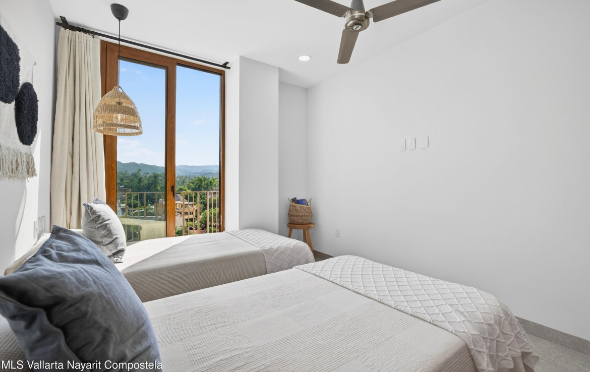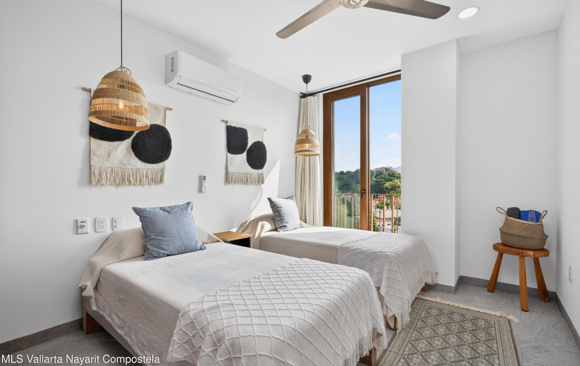 Penthouse Luxury Condo | City & Ocean Views | Steps from the BeachExperience elevated coastal living in this brand-new penthouse condo located on the first block from the beach in San Pancho–just steps to the sand. The condo features 2 bedrooms, 2 full bathrooms, and over 900 sq ft of thoughtfully designed living space. As one of the penthouse units, it enjoys expansive city views with glimpses of the ocean, creating a unique blend of vibrant town energy and coastal serenity. The property is fully furnished and professionally styled by one of the area’s top local interior designers, offering a refined, turn-key experience from day one.