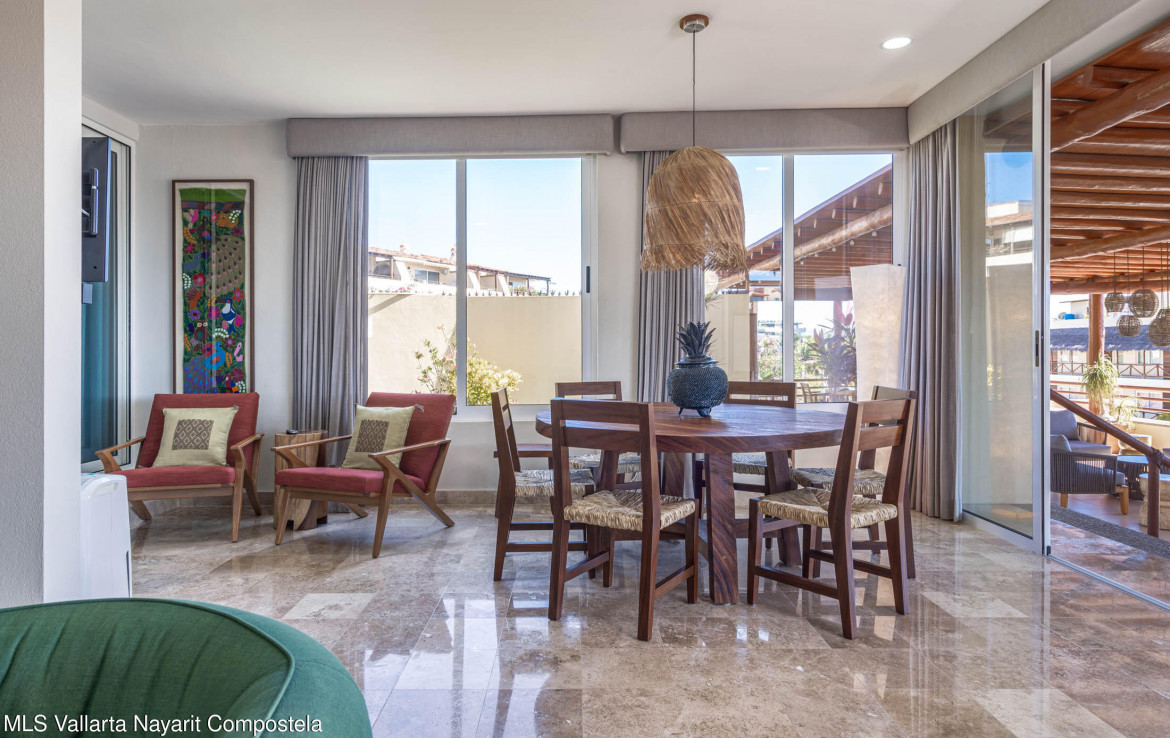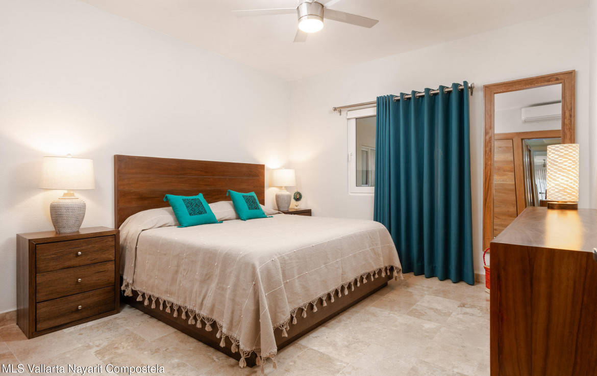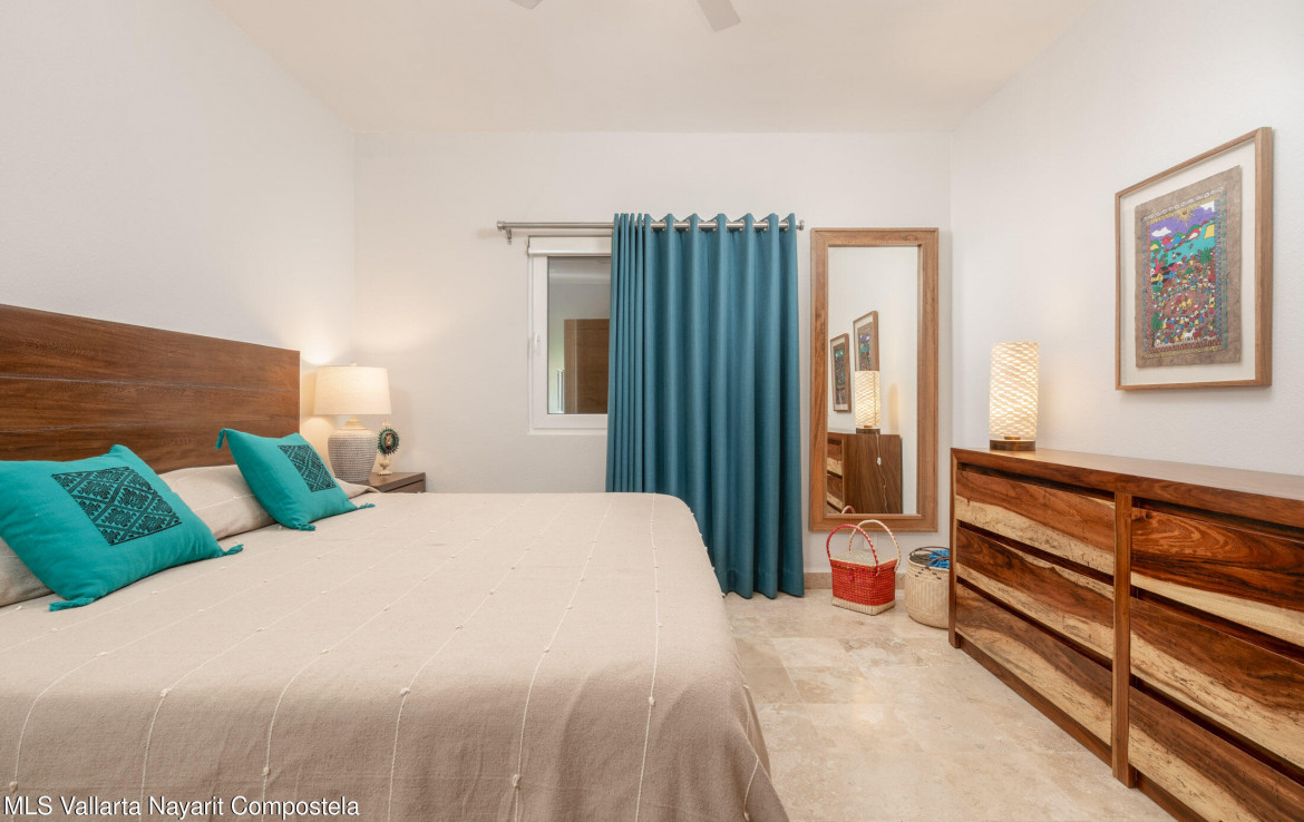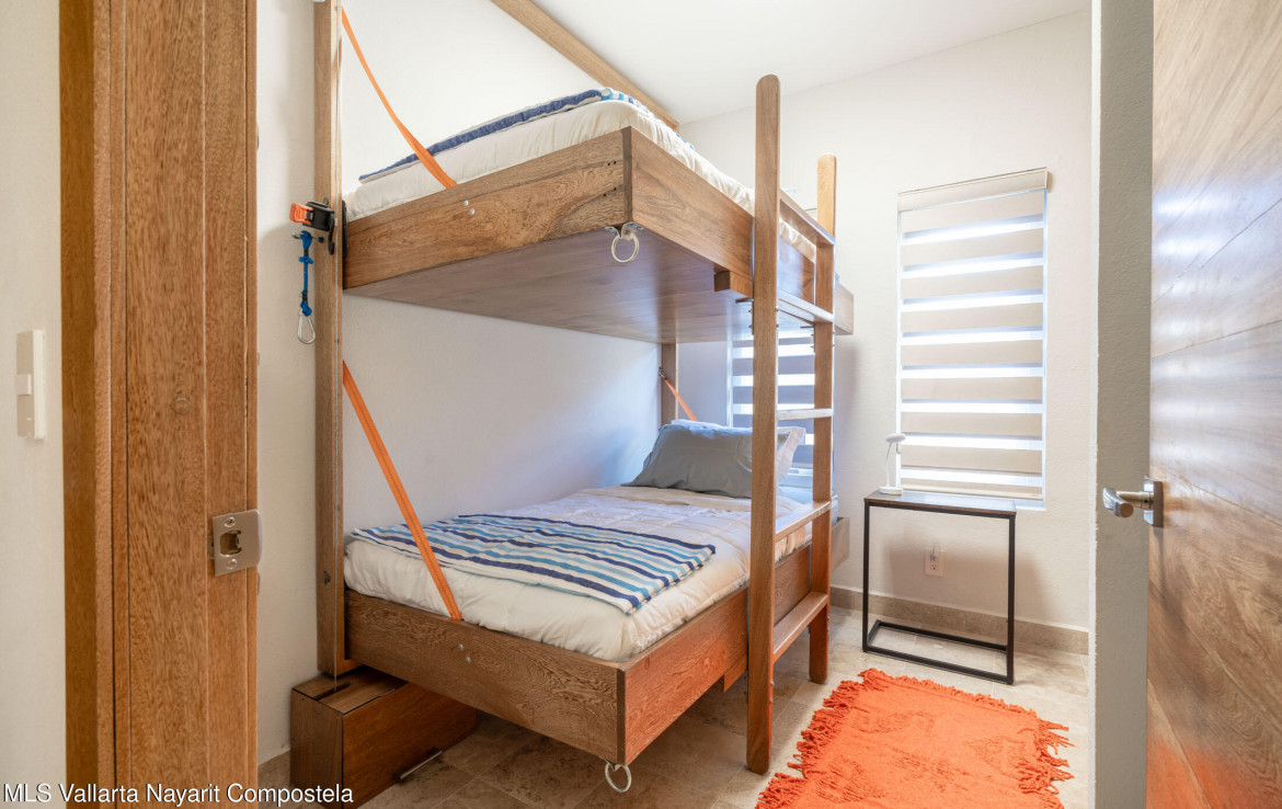 Biggest Unit at Faro de Mita, this beautiful 2 bedroom, 2 bathroom Condo, on the first floor of the Faro de Mita complex, with an excellent location, close to the town center of Punta de Mita, with direct access to the beach. The Unit is decorated with designer furnishings and high-end appliances. The both master bedroom and second bedroom have a king-sized bed, private bath with a large walk-in shower, large closet and additional storage. Laudry room has bunk beds that can be pulled up and down to accommodate guest comfortably. It has a fantastic private balcony, comfortable and spacious living spaces.