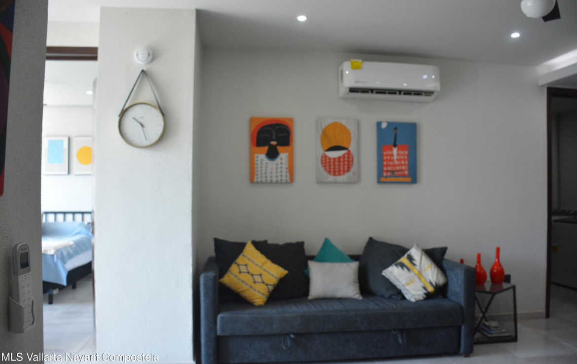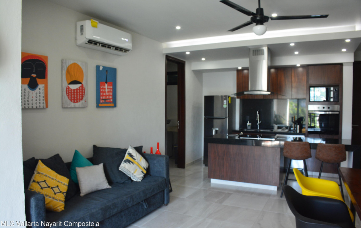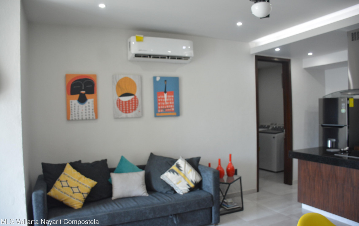 Beautiful Fully Furnished Apartment for Sale, Move-In Ready!Just 5 minutes from the Puerto Vallarta Malecon, Romantic Zone, and surrounding areas. This unit features: 2 bedrooms, each with a full bathroom and walk-in closet. Living room, dining area, fully equipped kitchen, and a cozy terrace. Service room and one underground parking space. The building consists of 27 units and includes: Elevator, rooftop with a BBQ area, and a pool with stunning ocean viewGoogle Maps Coordinates: 20.624680, -105.223330