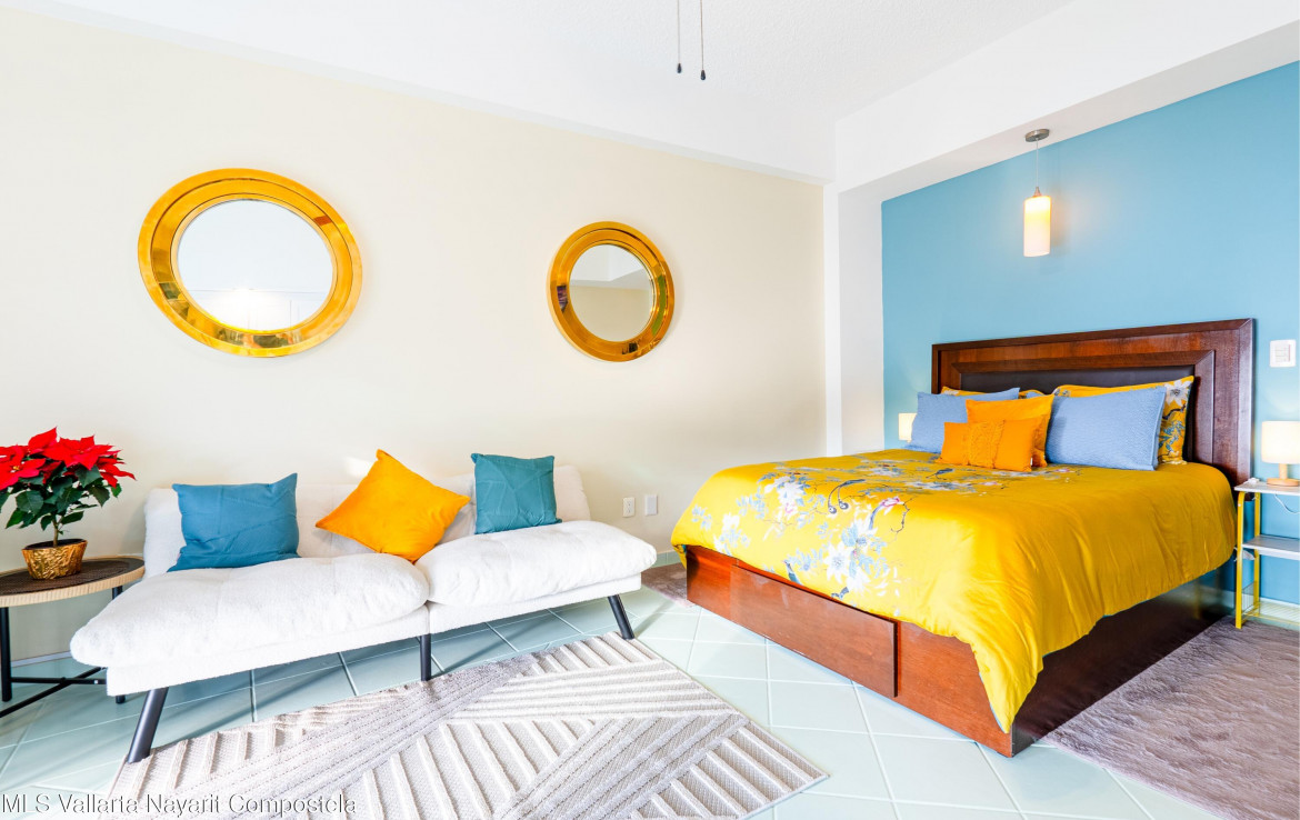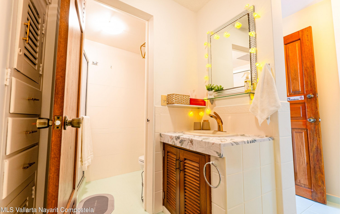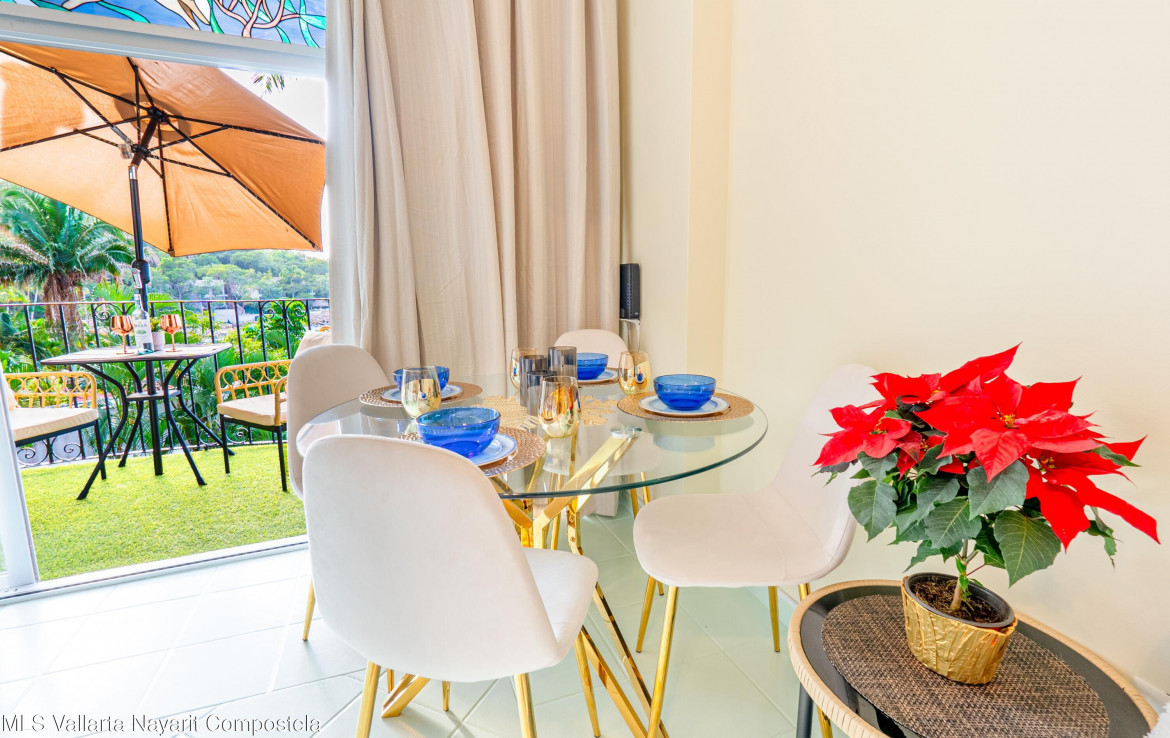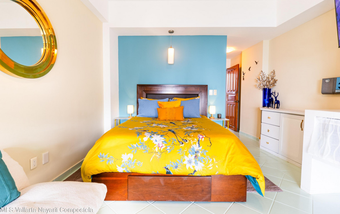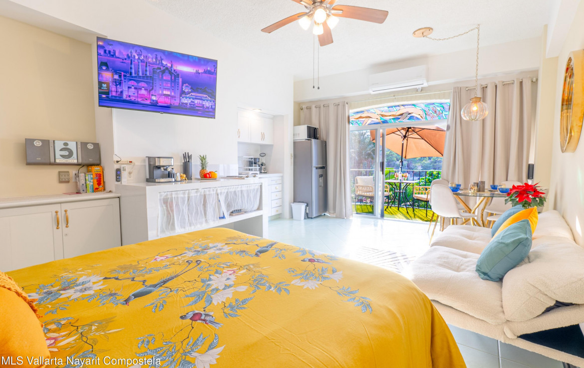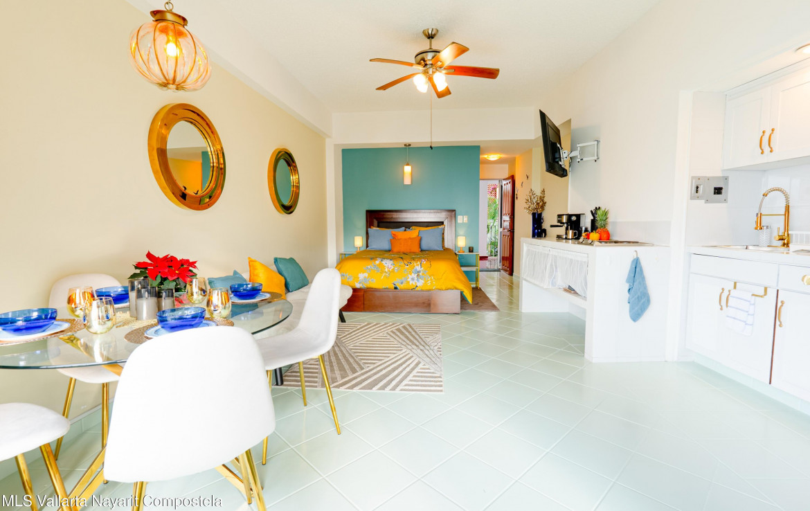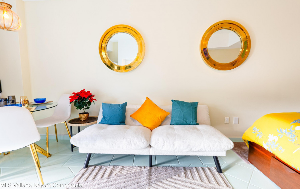 Estudio frente al mar en venta en Playas Gemelas Puerto Vallarta. Con 45.45 m2 fue totalmente renovado en diciembre de 2025 y ofrece vistas panoramicas al oceano acceso directo a la playa y excelente iluminacion natural. Diseno bohemio chic con texturas naturales y tonos azules. Se vende completamente amueblado y listo para operar con cocina equipada utensilios nuevos electrodomesticos blancos y decoracion todo adquirido en diciembre de 2025. Ideal como propiedad de descanso o para renta vacacional a minutos del centro.