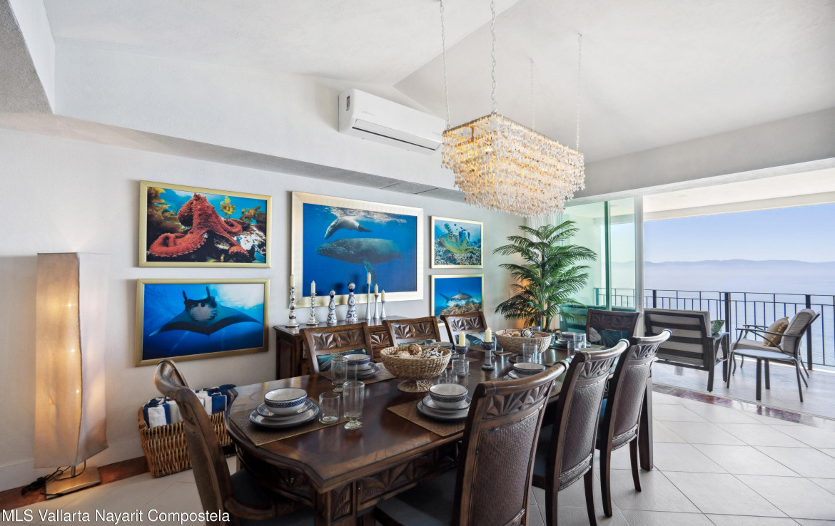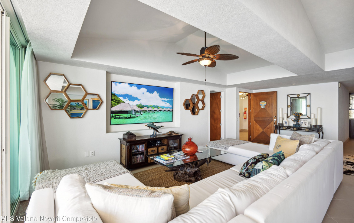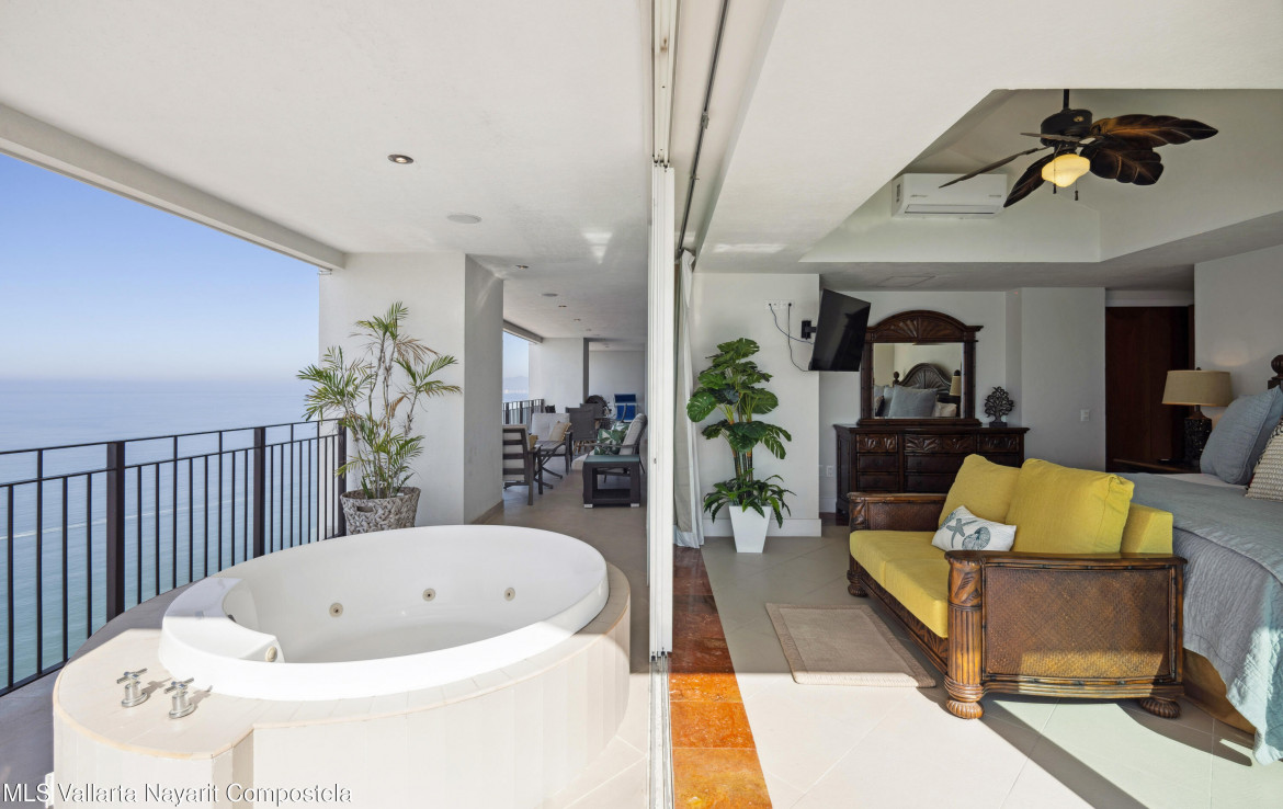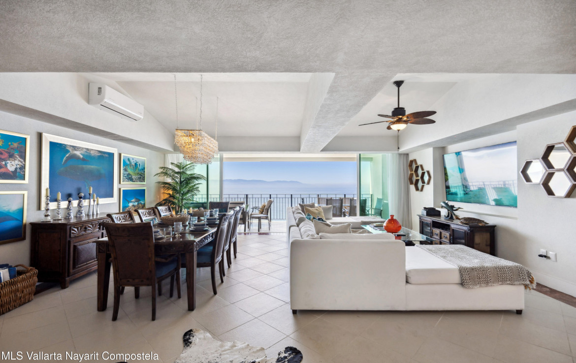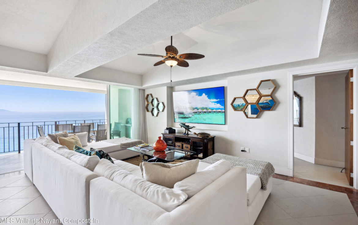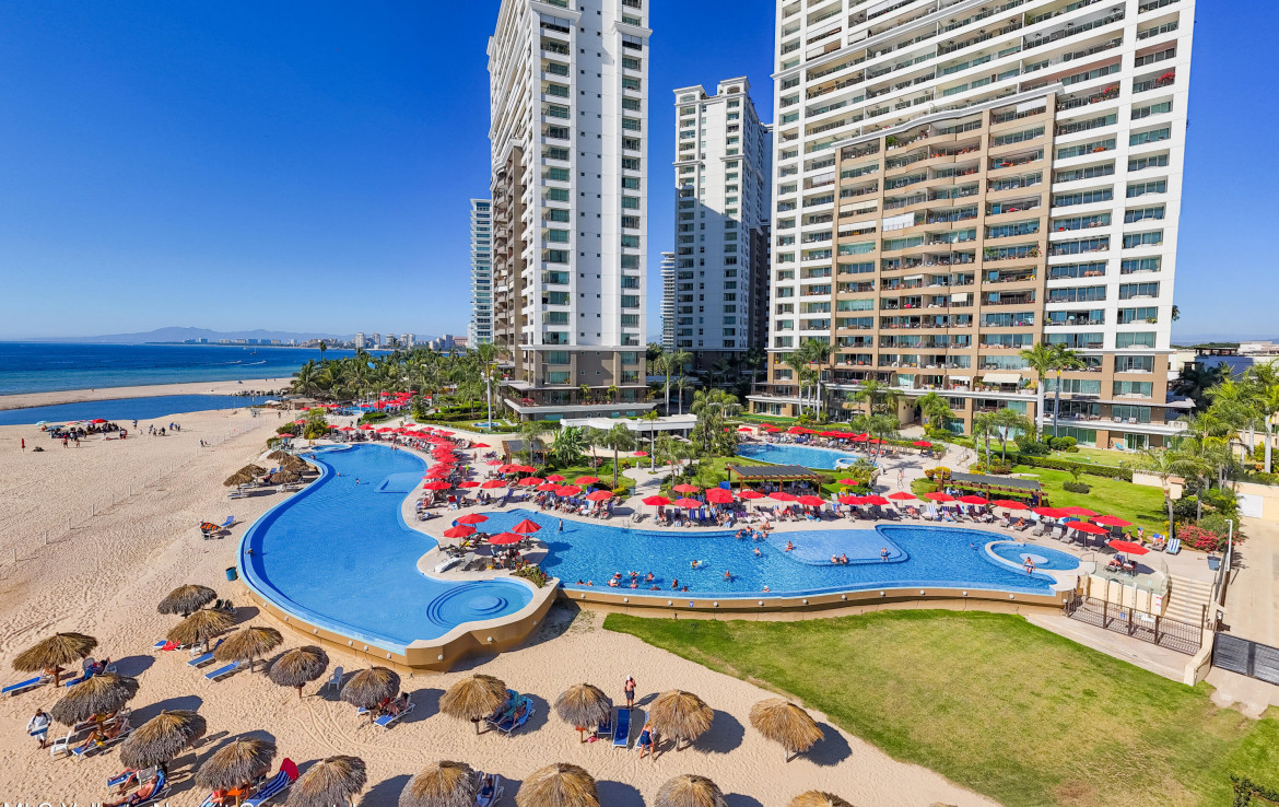 Luxurious Oceanfront Living at Grand Venetian – Spectacular South Corner CondoWelcome to an exquisite 4-bedroom, 5-bathroom corner residence in the prestigious Grand Venetian, one of Puerto Vallarta’s most sought-after beachfront communities. This sprawling luxury condo offers breathtaking panoramic views of the Pacific Ocean, Banderas Bay, and the city skyline, visible from its wraparound terrace.Designed for both elegance and comfort, this expansive open-concept home features floor-to-ceiling sliding glass doors, flooding the space with natural light and allowing seamless indoor-outdoor living. The modern gourmet kitchen, complete with high-end appliances and a sleek breakfast bar, opens to the spacious living and dining areas perfect for entertaining while enjoying mesmerizing