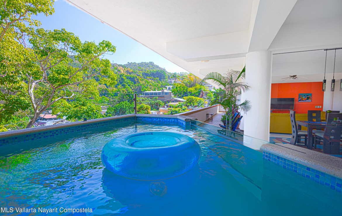 One Owner – Custom Built – Boutique Building Spacious home with plenty of room to spread out and relax in this 3 bedroom 3.5 bathroom condo in the Colonia 5 de Diciembre. The condo is the next area over from El Centro. The building is located on a quiet street with magnificent views to the mountains and city lined with beautiful trees and happy chirping birdies. Each bedroom is comfy and roomy and each bedroom feels like the primary bedroom and has its own ensuite bathroom for lots of privacy and separation from other bedrooms. Included for your enjoyment Private large dipping Pool Large terrace Elevator into the unit from the garage.