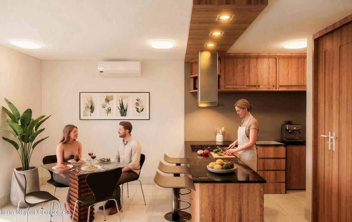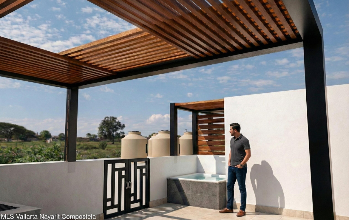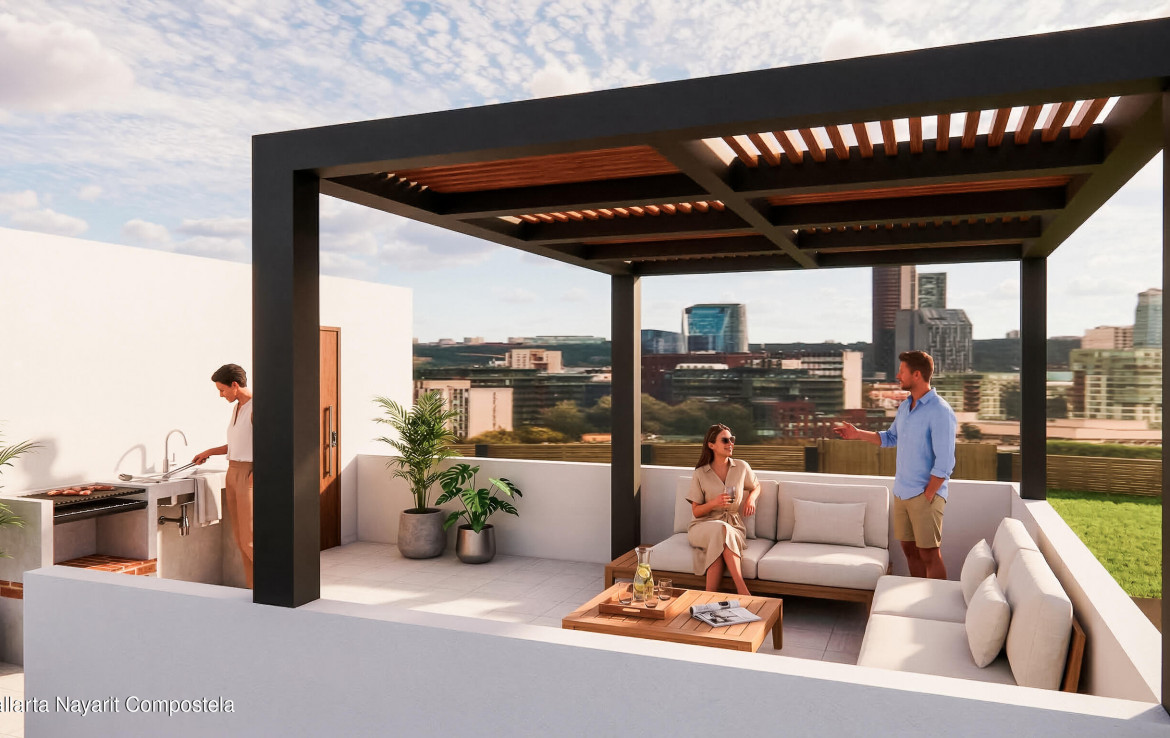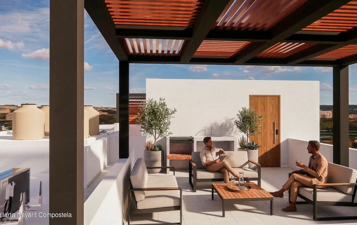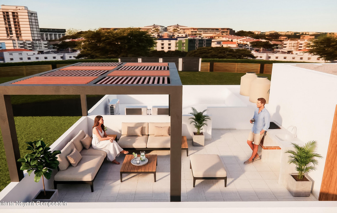 HARAMARA BUCERIAS | Boutique Pre-construction & PH Residence An exclusive, low-density pre-construction development featuring only 4 units with high-end contemporary finishes. This PH Residence is located on the second level, offering an elevated living experience with superior privacy and exclusivity. The unit features 2 bedrooms, 2 full baths, an integral kitchen, and a bright open layout. Its standout features are the outdoor living spaces: a private balcony and a stunning private terrace with wooden pergolas, specifically designed to provide shade and comfort for effortless outdoor entertaining. Includes 1 parking space.