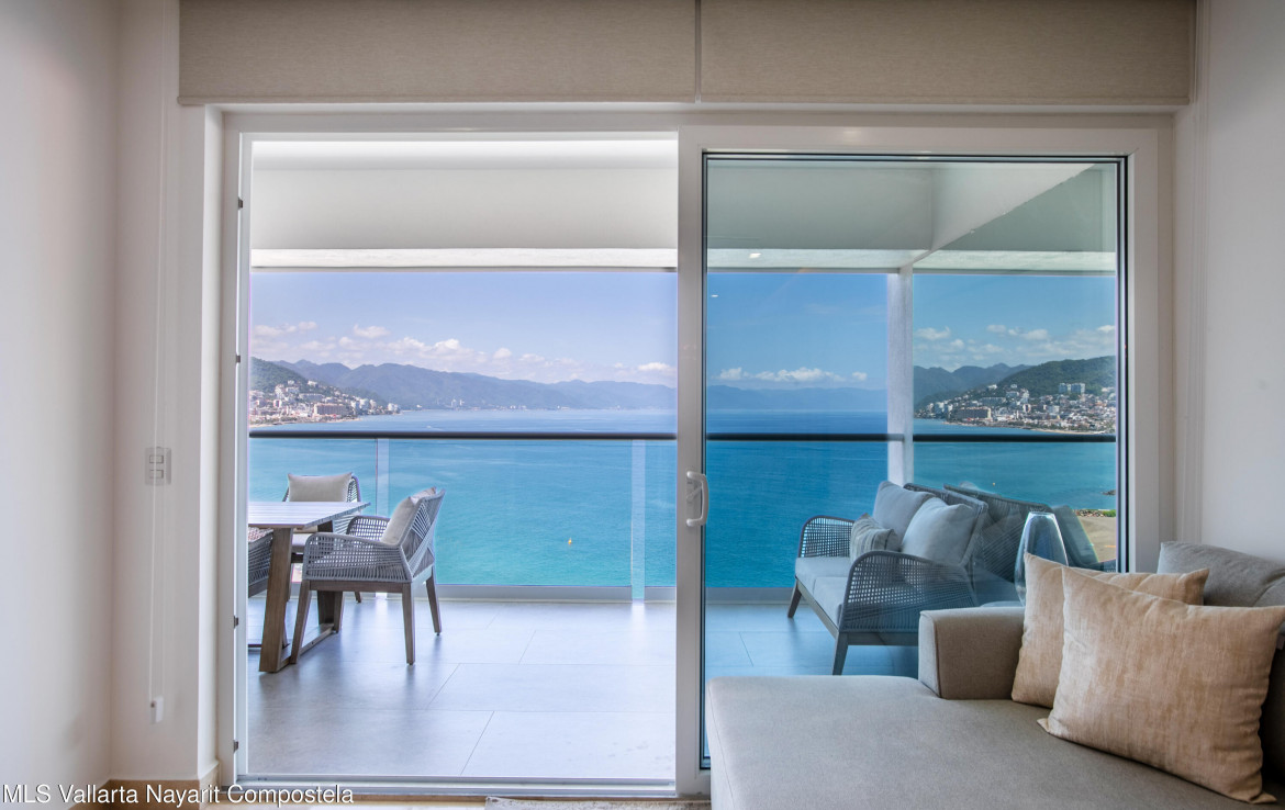 Lujoso departamento con vista al mar y a Vallarta, incluye estacionamiento y bodega escriturados, amueblado con la mas alta calidad y buen gusto. Listo para mudarse. Facil de mostrar.Experience coastal elegance on this stunning 2 bed 2 bath oceanfront condo, with parking and storage included!, where luxury meets tranquility. Featuring designer finishes throughout, with spacious open-concept living area, kithchen with high-end appliances and floor to ceiling windows framing breathtaking oceanviews. The primary suite boasts a spa-inspired bathroom and private balcony access, while the second bed provides comfort and style for guests. Enjoy resort-style amenities and the soothing sound of the waves- your exclusive seaside retreat awaits.