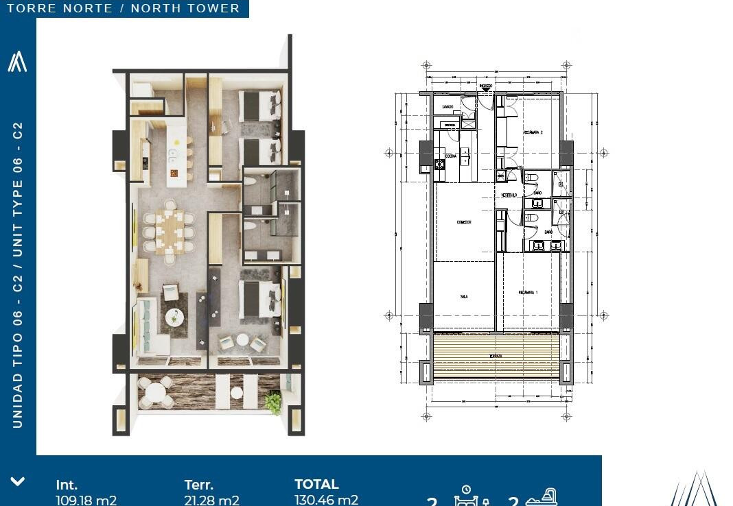 • Recámaras: 2