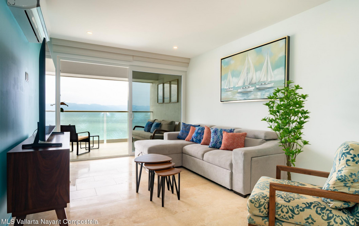 Vive el lujo frente al mar en Puerto Vallarta en el desarrollo frente a la playa Harbor 171 con la mejor ubicacion de la ciudad, a solo 5 minutos del centro de Puerto Vallarta. Disfruta de las vistas mas espectaculares de la Bahia, el oceano, las montanas y la ciudad.Este lujoso departamento de 2 recamaras y 2 banos lo tiene todo: Totalmente amueblado y equipado (mejoras como cortinas electricas y filtro de agua) Amplia terraza con vista al mar,Estacionamiento privado y bodega (INCLUIDOS en el precio)Ideal como inversion de renta vacacional (una verdadera maquina de ingresos!) o como un espacio perfecto para vacacionar en el paraiso.Disfruta de amenidades de primer nivel, incluyendo:Roof top con vistas panoramicas, gimnasio