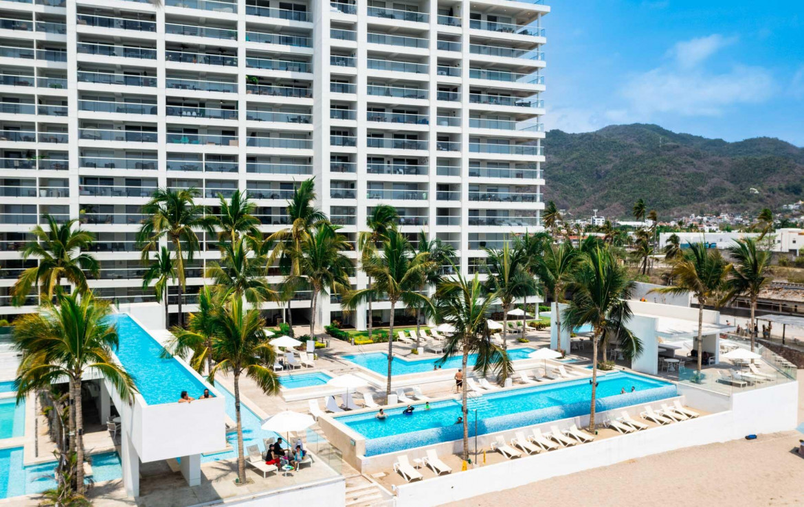 Embrace the vibrant lifestyle of Puerto Vallarta with this newly listed, beachfront condominium located in the premier Hotel Zone. Offering 168 m2 of elegantly furnished living space, this property not only guarantees comfort but also promises a robust return on investment, especially appealing for those considering vacation rentals or relocation.This exquisite condo features two well-appointed bedrooms and two modern bathrooms, ensuring ample space for families or guests. The open-concept living area seamlessly extends to a private outdoor space, where you can enjoy breathtaking views of the sandy beaches and bay.Safety and convenience are paramount here. With exclusive amenities such as a 24-hour security service,