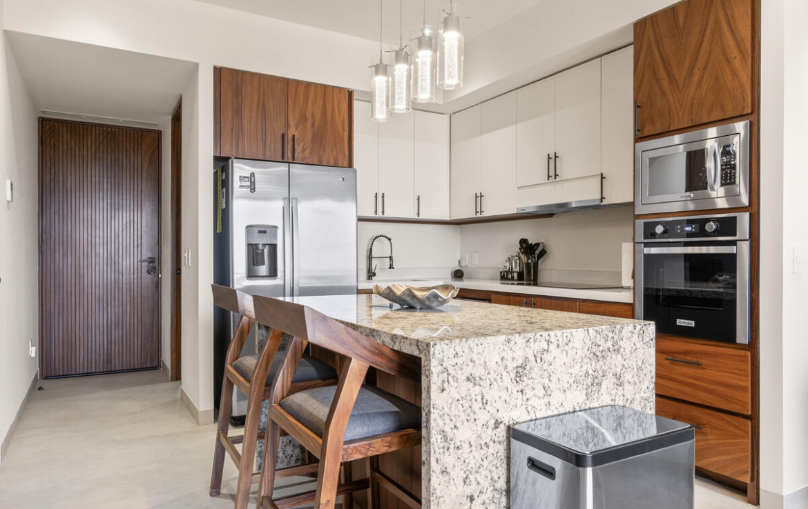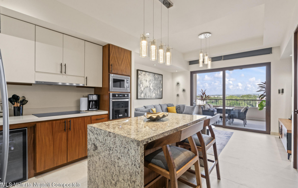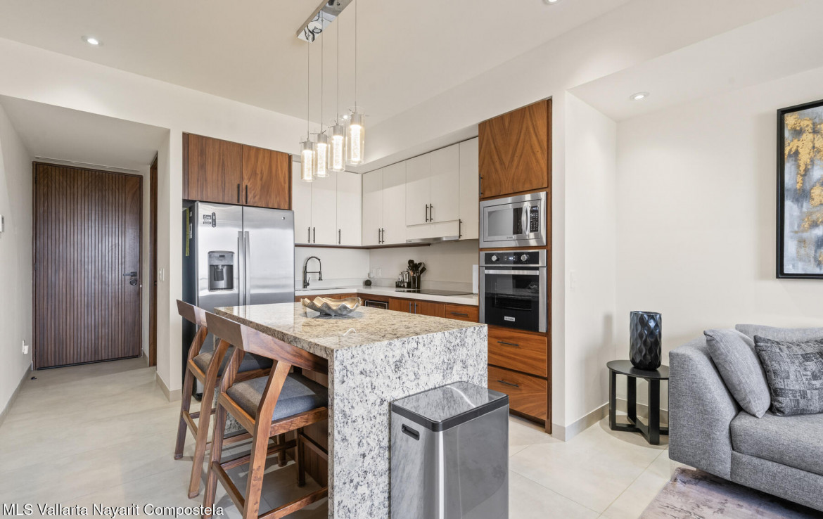 One of Puerto Vallarta’s most desirable walkable neighborhoods features this beautiful contemporary condo located in the heart of Versalles. Surrounded by the city’s newest restaurants and cafes, this prime location offers flat streets perfect for biking and easy everyday living.Inside, the residence features a bright, modern layout centered around a custom granite kitchen island, complemented by high-end appliances including a wine refrigerator, sleek cabinetry, and premium finishes throughout. Large windows invite natural light and showcase mountain and city views.The boutique building offers only 33 units, creating an intimate and private atmosphere.