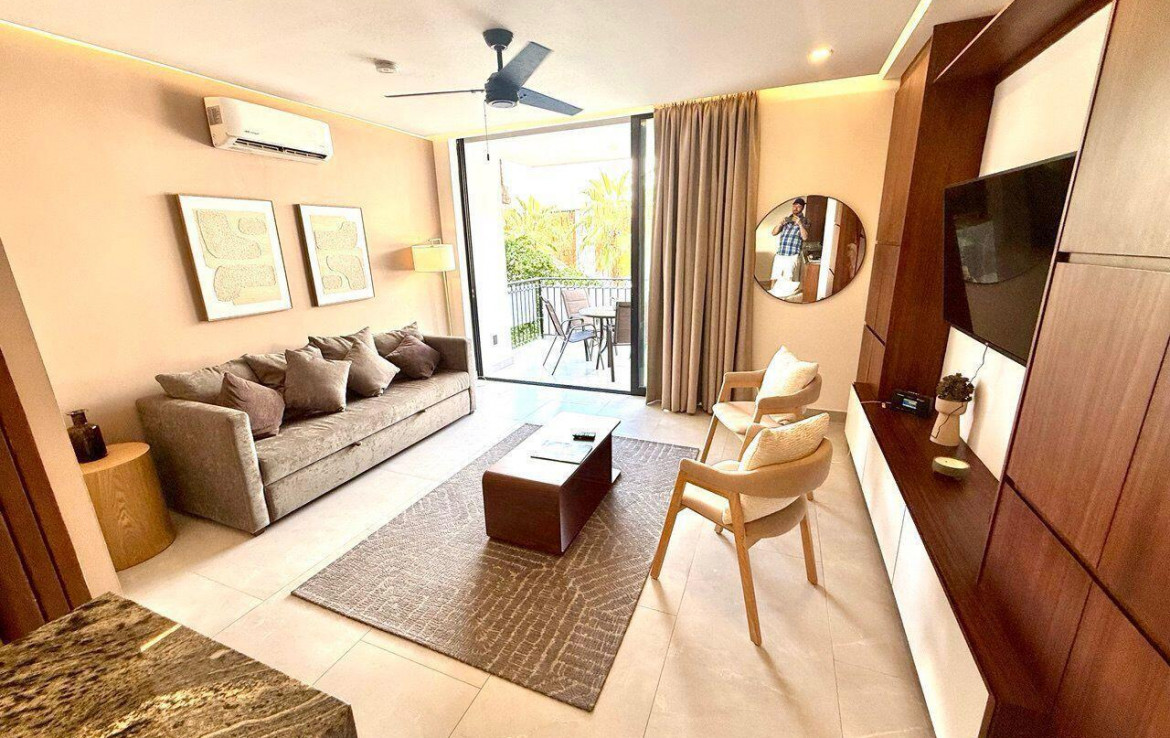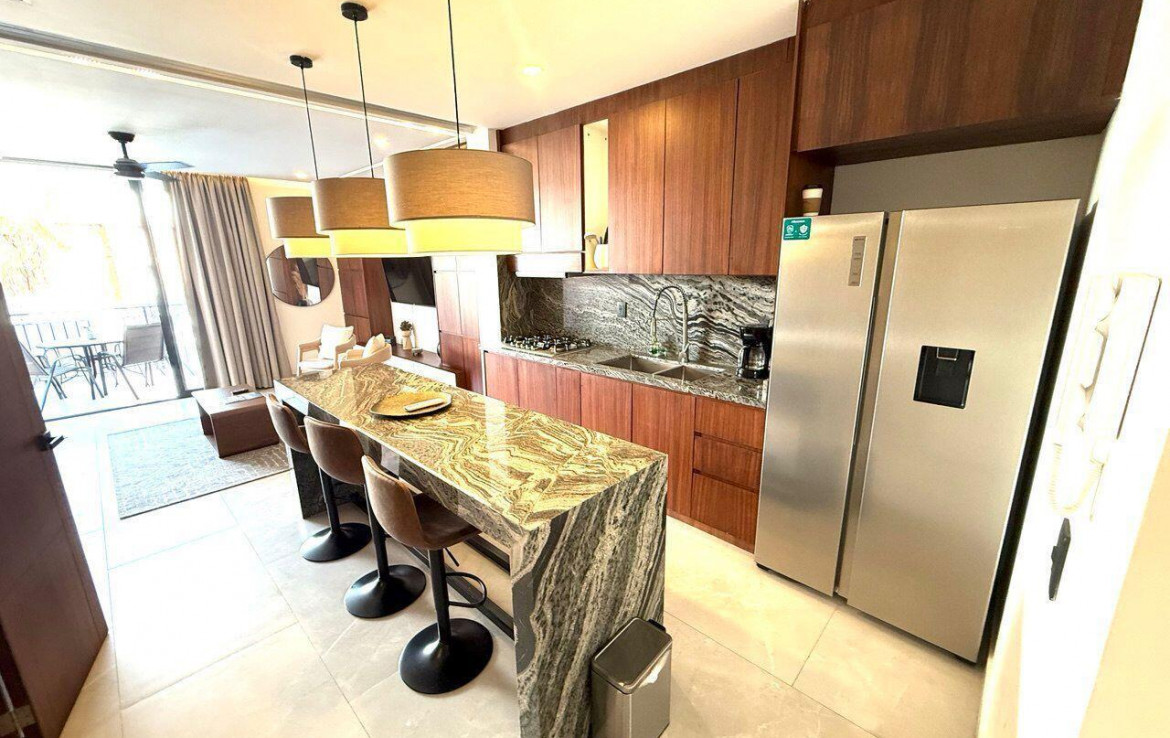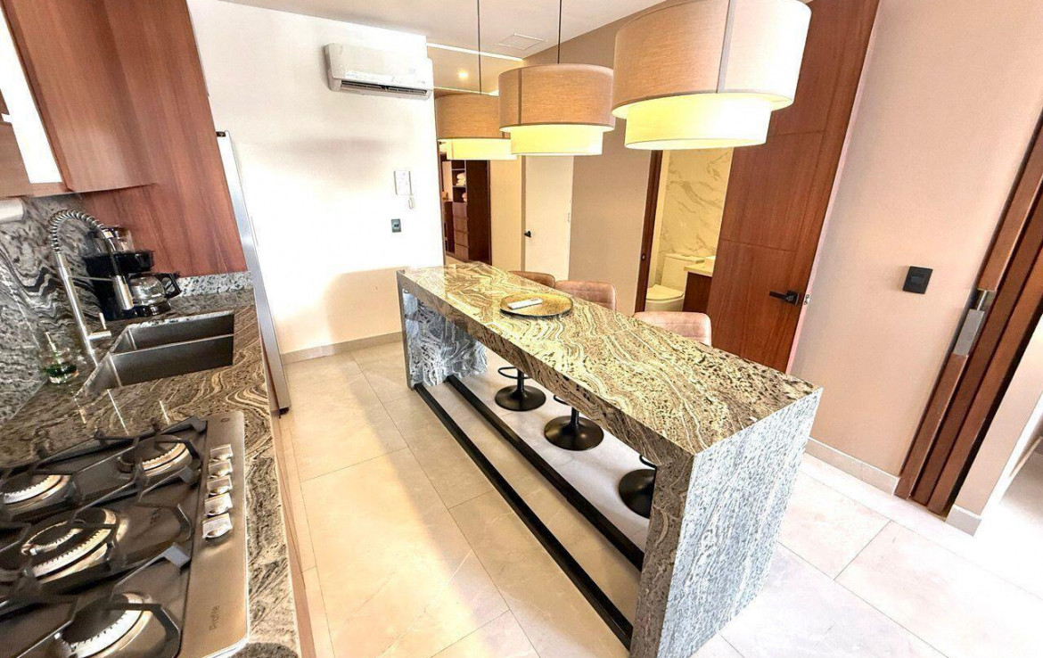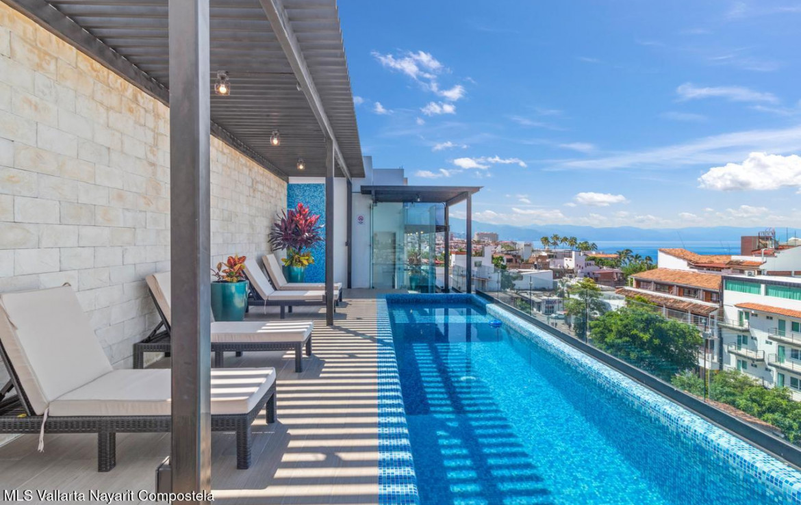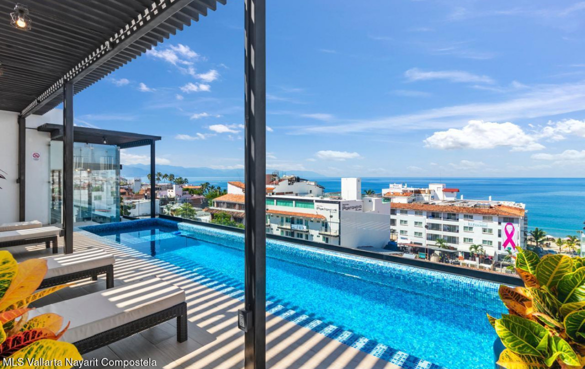 Orizontes Condos – Unit 2 is a one-bedroom, two-bathroom condominium with a dedicated flex room, located in the walkable 5 de Diciembre neighborhood, just minutes from the beach and downtown Puerto Vallarta. Designed for full-time living and flexible rental use, the unit offers a functional layout that prioritizes daily comfort and adaptability.The residence features a private soaking tub in the primary bedroom as an integrated wellness element, a second full bathroom for guest convenience, and a flex room designed as an additional living area or home office. A private balcony overlooks a quiet streetscape and offers a partial ocean glimpse, supporting indoor-outdoor living. Finished ceilings enhance acoustic stability and thermal comfort. Unit 2 presents a practical, manageable owner