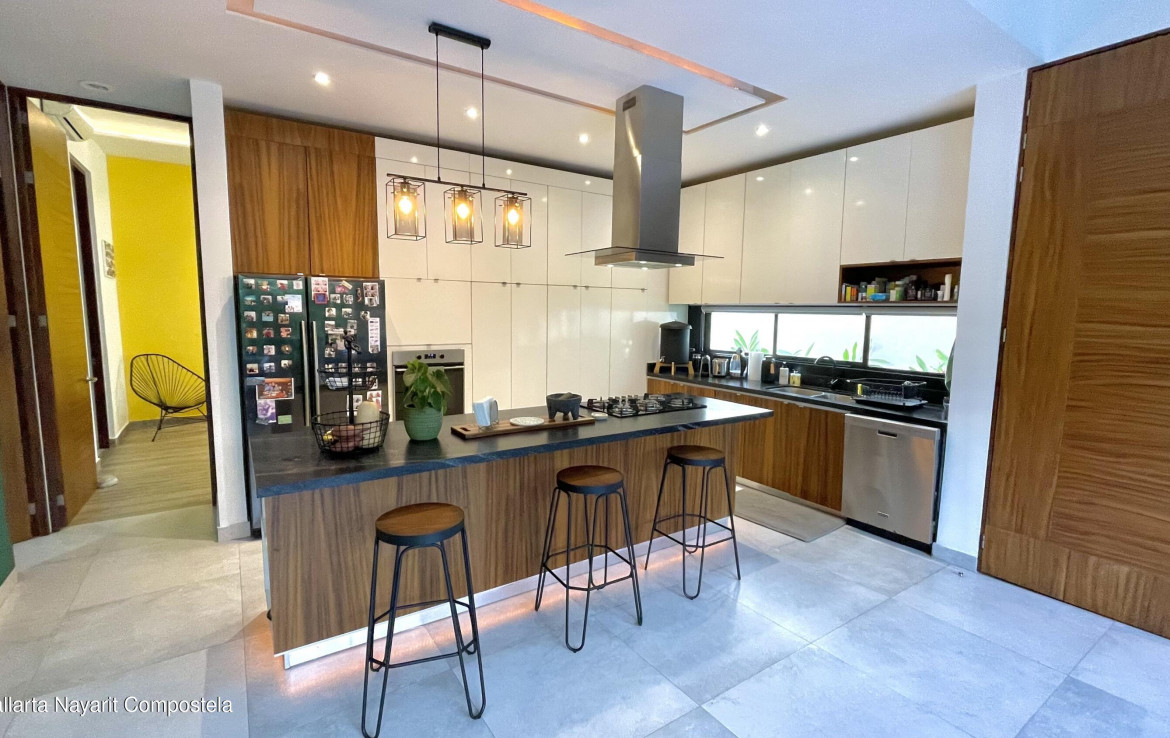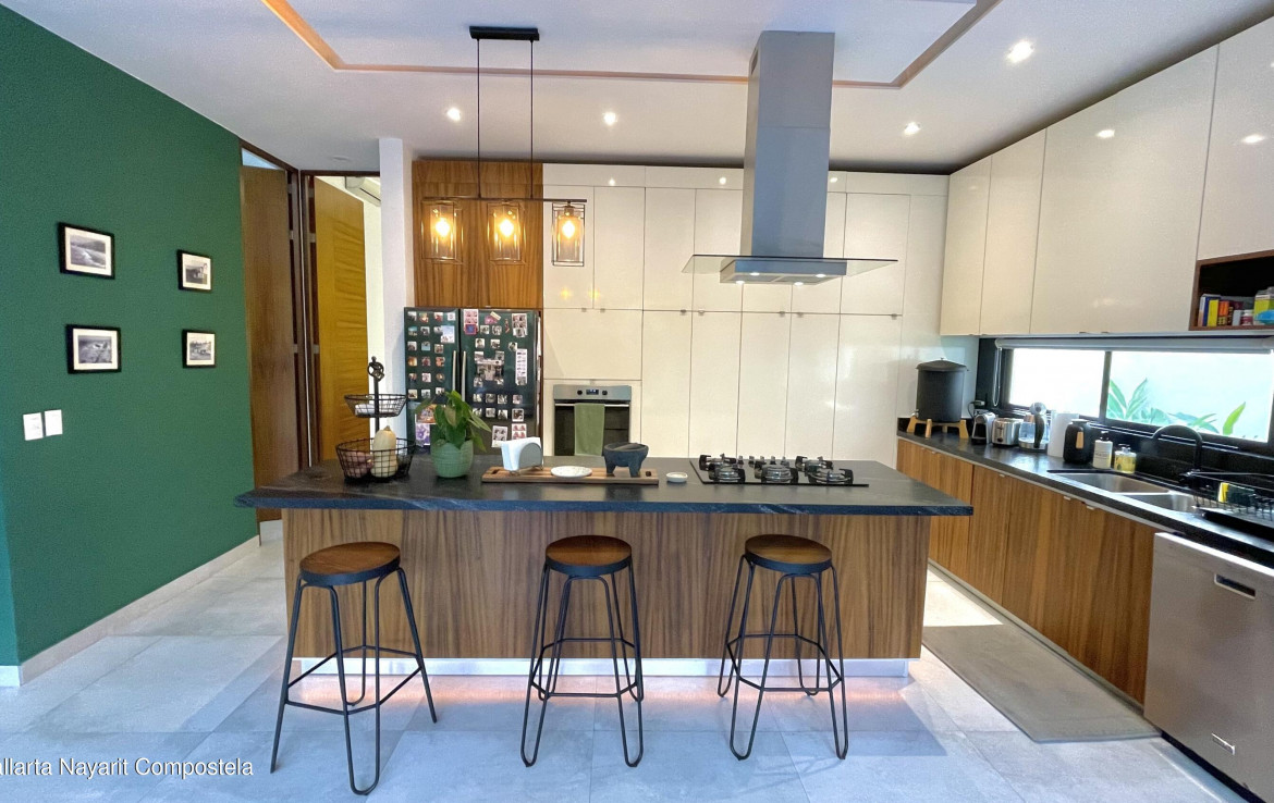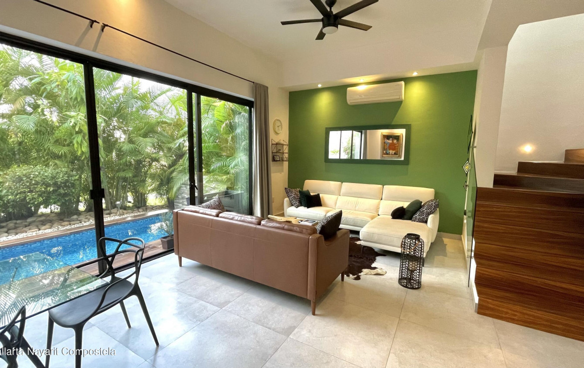 Price Reduction!! Investment opportunity, from 9.6M Pesos to 8.495M .4-bedroom residence in the exclusive Ikal gated community, located in the heart of Nuevo Vallarta. Ideal for a family or for vacationing.Beautiful house built on 2 floors. On the ground floor you will find:- covered parking with pergola for 2 vehicles and mini storage- kitchen, dining room, living room, half bathroom- private terrace with pool- bedroom with walk-in closet and very large full bathroom with tub and shower.On the first level:- family room, ideal as a TV room- 3 large bedrooms each with its own private bathroom and 2 of them with a shared balcony.