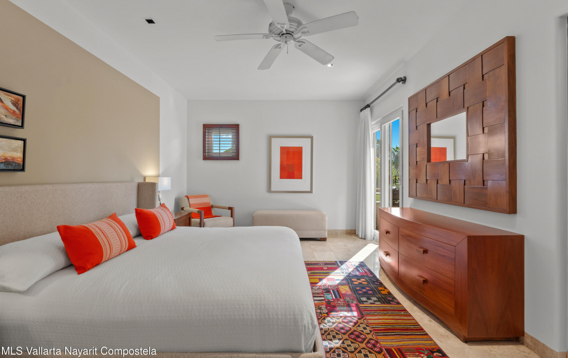 Discover the charm of El Tigre with this elegant one-bedroom corner unit in Isla Palmares. Located on the top floor( 3rd floor)Fully furnished with high-quality pieces, cathedral ceiling, ample storage, and refined design by an interior decorator, it offers comfort and sophistication. Interior parking space close to the elevator and large storage space included!The complex features lush gardens, indoor parking, and two pools integrated into nature. Located in Nuevo Vallarta’s prestigious community, it ensures 24/7 security and access to a sports club with tennis, pickleball, padel, gym, training areas, children’s pools, and a semi-Olympic pool. Residents also enjoy a world-class golf course, vast green spaces, and a private beach club with restaurant and exclusive services