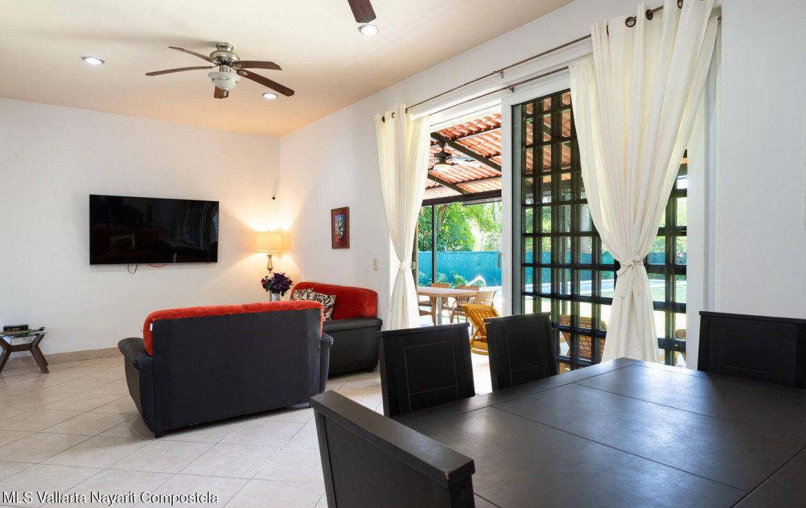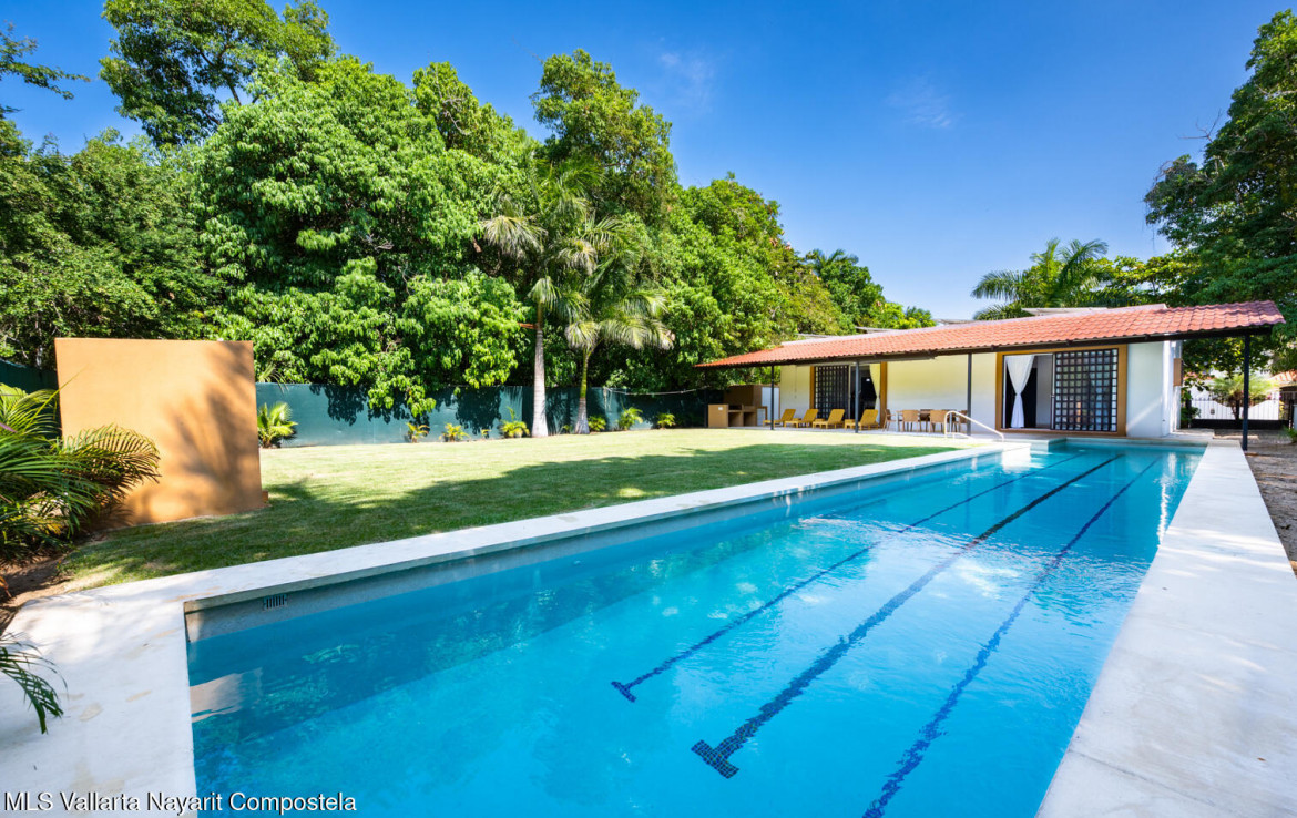 ENGLISH BELOWUbicada en 165 Calle Jacarandas, Nuevo Vallarta, esta casa de un solo nivel se encuentra dentro de una privada con acceso controlado y seguridad, con potencial para construir muelle privado y preparacion para un segundo nivel. Cuenta con dos recamaras, un estudio, dos banos completos, un amplio jardin y alberca semiolimpica, con areas de sala, comedor y cocina integradas de forma fluida y confortable.Located at 165 Calle Jacarandas, Nuevo Vallarta, this single-level home is in a gated community with security, offering potential for a private dock and a second level. It features two bedrooms, a study, two bathrooms, a spacious garden, and a semi-Olympic pool, with an open and functional living, dining, and kitchen layout.