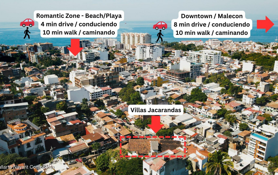 [ENGLISH BELOW] A una cuadra de la calle Basillo Badillo encontraras Villas Jacarandas.Esta exquisita casa de 2 dormitorios y 2 banos, renovada, completamente amueblada y con aire acondicionado. Maravillosa luz natural, perfecta para vacaciones o escapadas romanticas y cafe por la manana en la terraza.Ubicacion privilegiada: a 10 minutos a pie de la playa de la Zona Romentica y del corazon de El Centro.Nota: * Estacionamiento compartido por orden de llegada. **Sin ascensor, 21 escalones desde la calle hasta el edificio, +16 escalones desde la puerta principal del edificio hasta la puerta principal del apartamento.