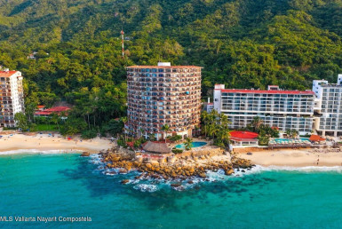 This iconic gated residential community on the south coast of Puerto Vallarta fronts onto an exquisite white sand beach and the crystal clear waters at close proximity to los Arcos with great snorkeling and birdwatching. This 3 Bedroom, 2 Bath double corner residence on the 8th floor was remodeled in traditional Mexican style offering spectacular views of the Bay, sunsets, Los Arcos, tropical gardens and Sierra Madre mountains from almost every angle, its ample terrace, windows and balcony. Community offers 2 large heated swimming pools; sundecks; wifi center; outdoor outdoor & indoor garage. 24 hour security & front desk. Restaurant service is also available.