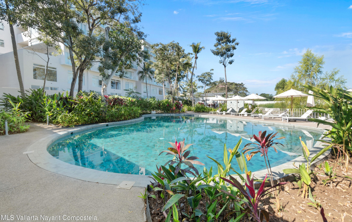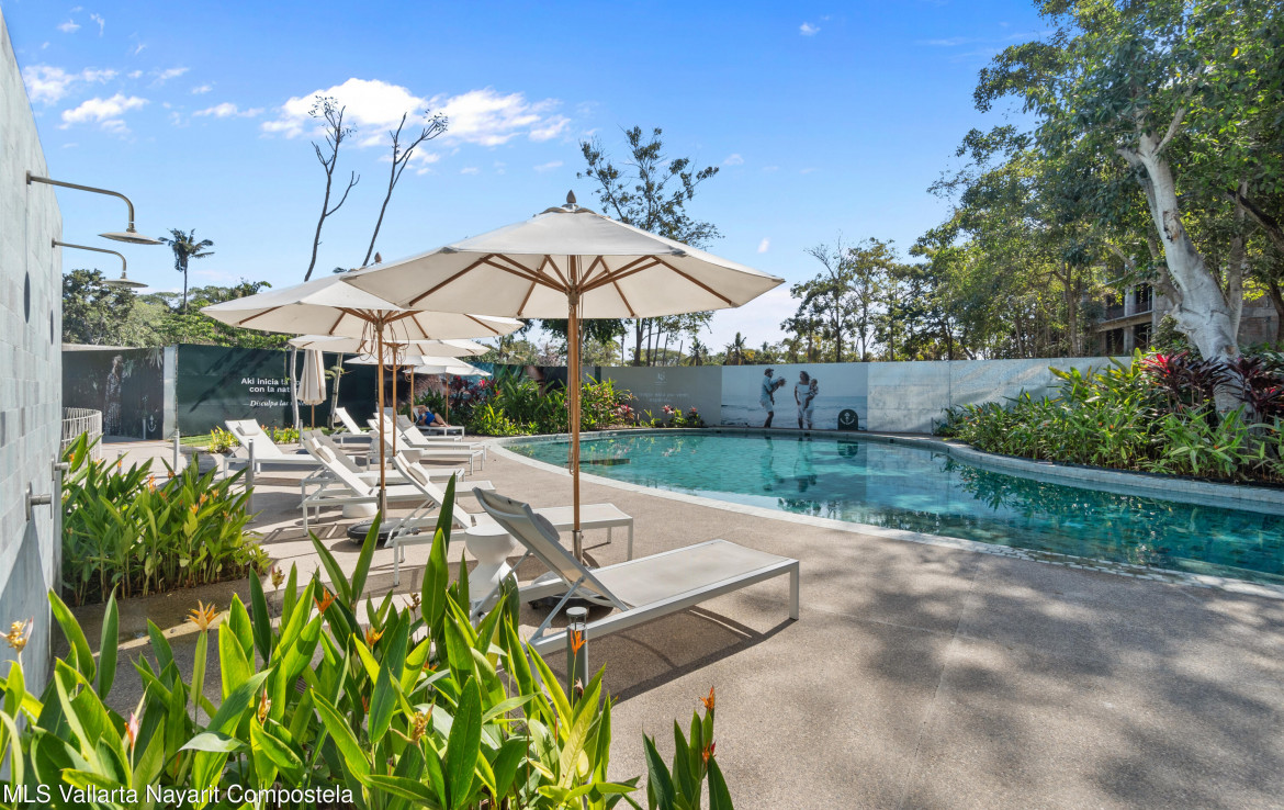 Discover the perfect balance of luxury and nature in this fully furnished 1-bedroom, 1-bathroom condo in Green District, Nuevo Vallarta. Located in an eco-friendly development with lush green areas, swimming pools, a yoga zone, jogging trails, and sports courts, this home features a modern design with high-end finishes, a quartz countertop kitchen, and air conditioning. Enjoy an exclusive lifestyle just minutes from the best beaches, restaurants, and shops in Riviera Nayarit.