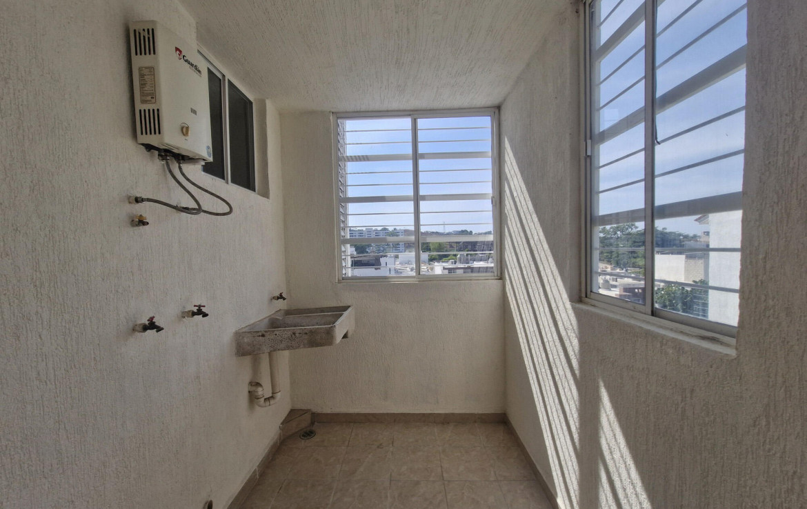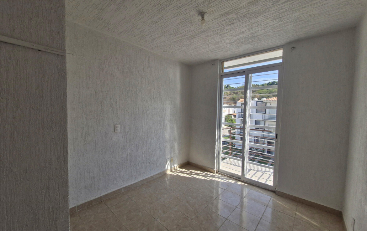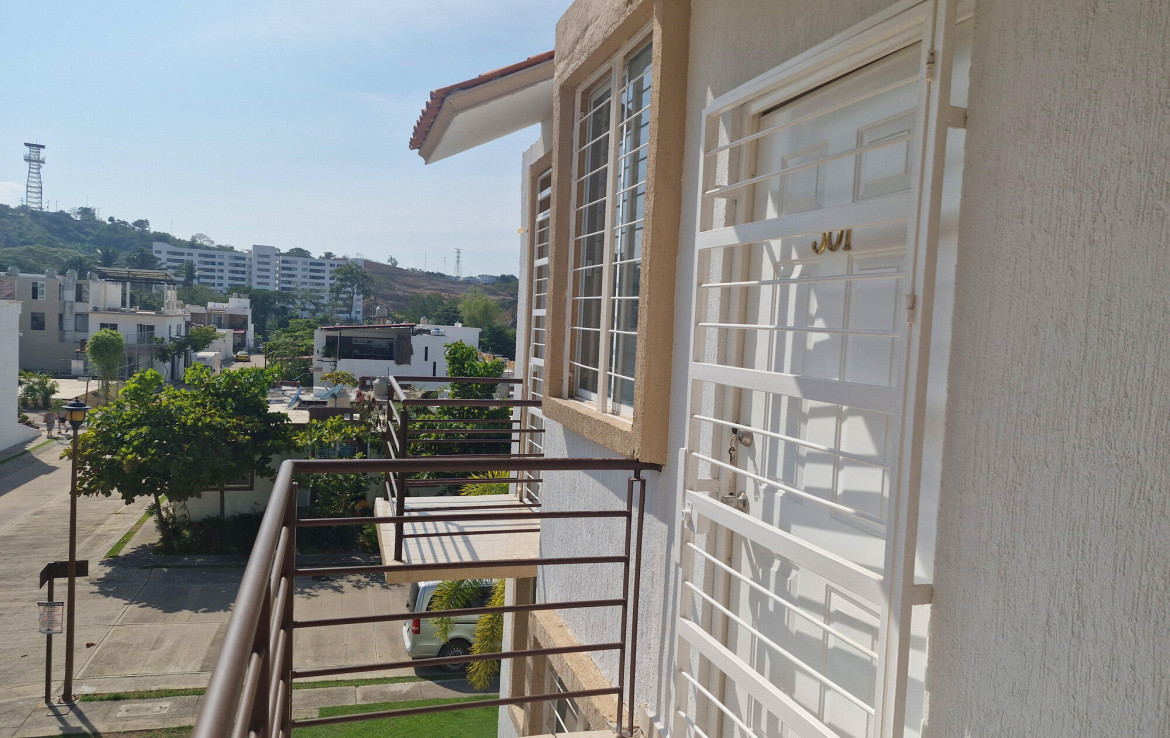 Departamento en planta alta en el desarrollo La Calma, un desarrollo con casas y departamentos en Ixtapa. Tiene 2 albercas, canchas, pista para correr y mirador. Muy cerca del CUC.