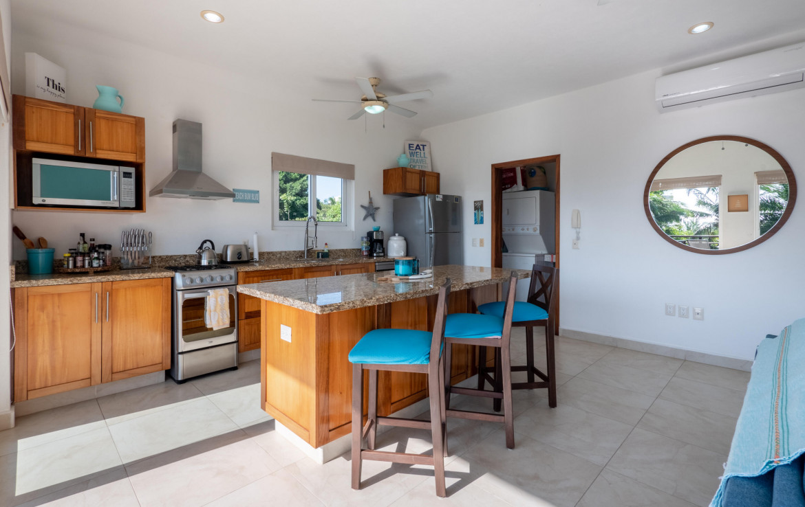 Paradise awaits!!! One bedroom one bath oceanfront condo with spectacular views in the highly sought after La Mision de Mita development in Punta de Mita. This unit includes a patio with 180 degree ocean views, full kitchen, laundry room and onsite parking. Everything in this 1100 square foot turnkey home is brand new and unit has an excellent rental history. Common areas include a large pool, hot tub, grilling area, grassy areas, hammocks and a rooftop sundeck. Step across the street to the surf break and white sandy beach, lay by the pool in the shady courtyard, or walk to the shops and 5 star restaurants of Punta de Mita. Su paraiso le espera!!! Condominio de una recamara y un bano, frente al mar con vistas espectaculares en el desarrollo popular La Mision de Mita en Punta de Mita
