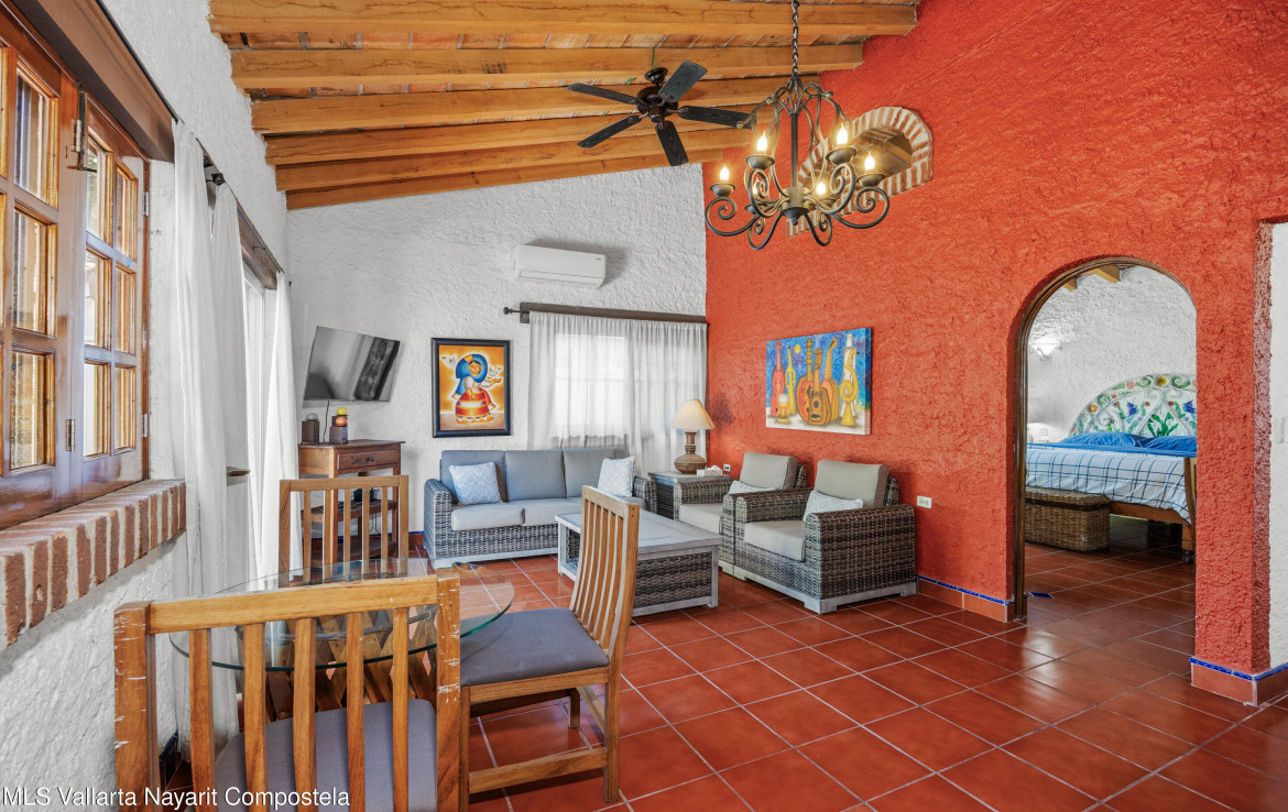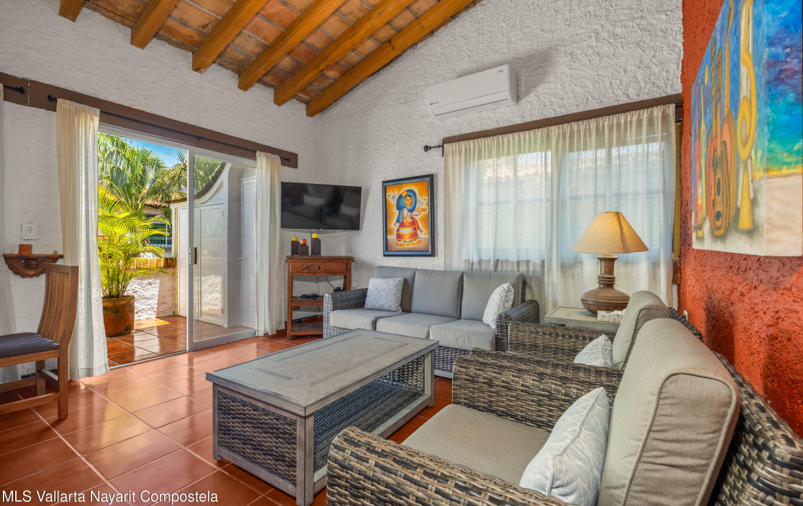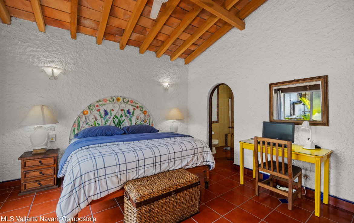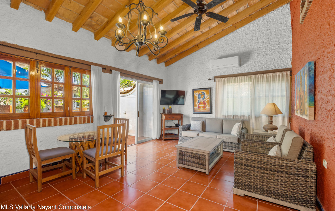 Descubre este encantador condominio de 1 habitacion y 1 bano, lleno de estilo mexicano, a solo una cuadra de la playa. Las puertas, ventanas y vigas de techo de madera de parota contribuyen a su caracter unico. El condominio se encuentra en un complejo pequeno y tranquilo ubicado en una calle de moda detras de ICON, en un vecindario tranquilo rodeado de tiendas de conveniencia, excelentes cafeterias, spas y mas. La ubicacion es inmejorable: a solo una cuadra de la playa, Chedraui, la Clinica Medica Sanmare y el Hospital San Javier. Este encantador condominio seria una excelente casa de vacaciones de invierno o una excelente oportunidad de inversion para alquileres. —