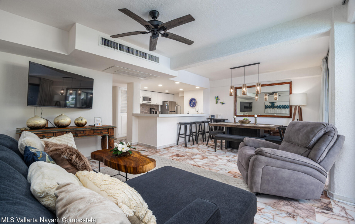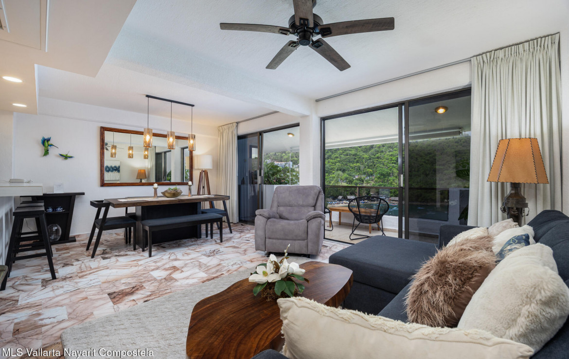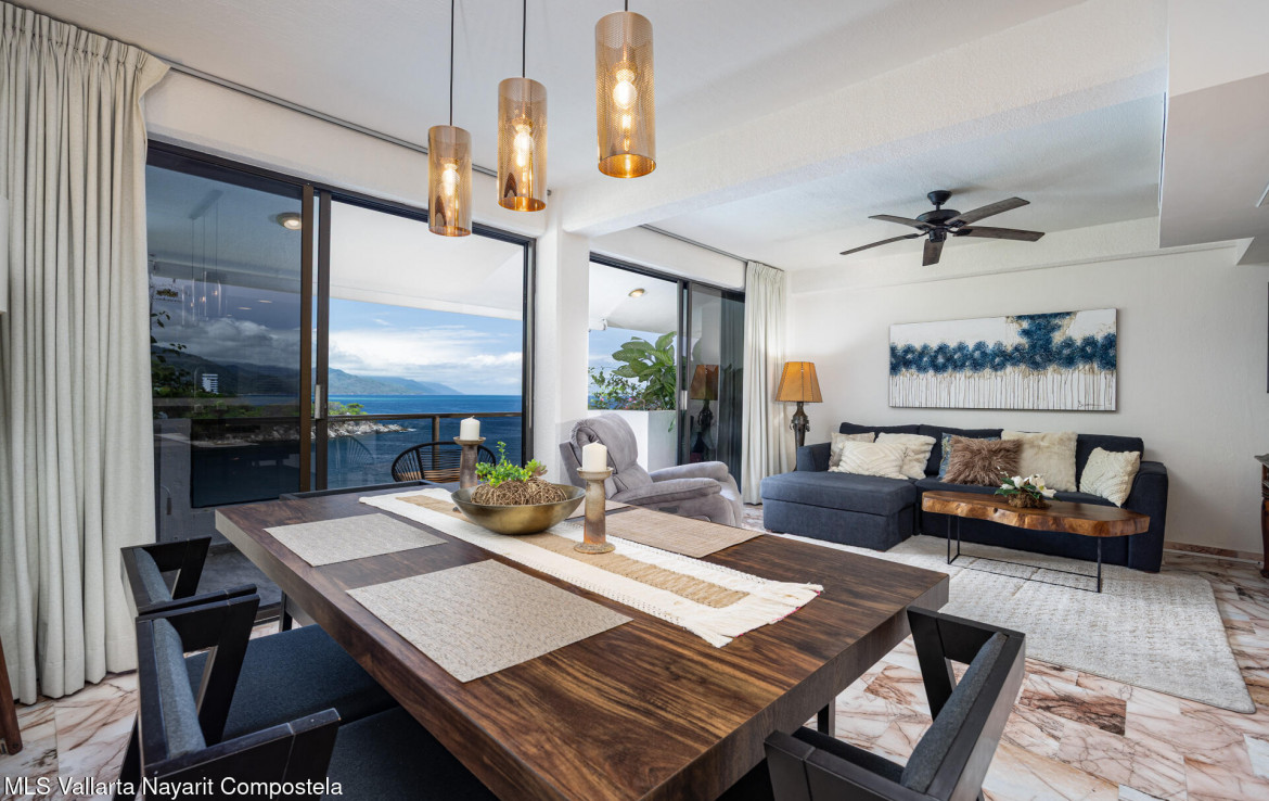 Beautiful oceanfront condo in La Jolla de Mismaloya, located in the South area of Puerto Vallarta. Enjoy the most beautiful sunsets by the ocean and the tropical lash Sierra Madre mountains. Amenities: 24/7 security & reception desk, swimming pool, jacuzzi, off street parking, tennis court, restaurant-bar, maid service, public laundry service. etc. The ideal property for a second home in paradise or a rental investment.
