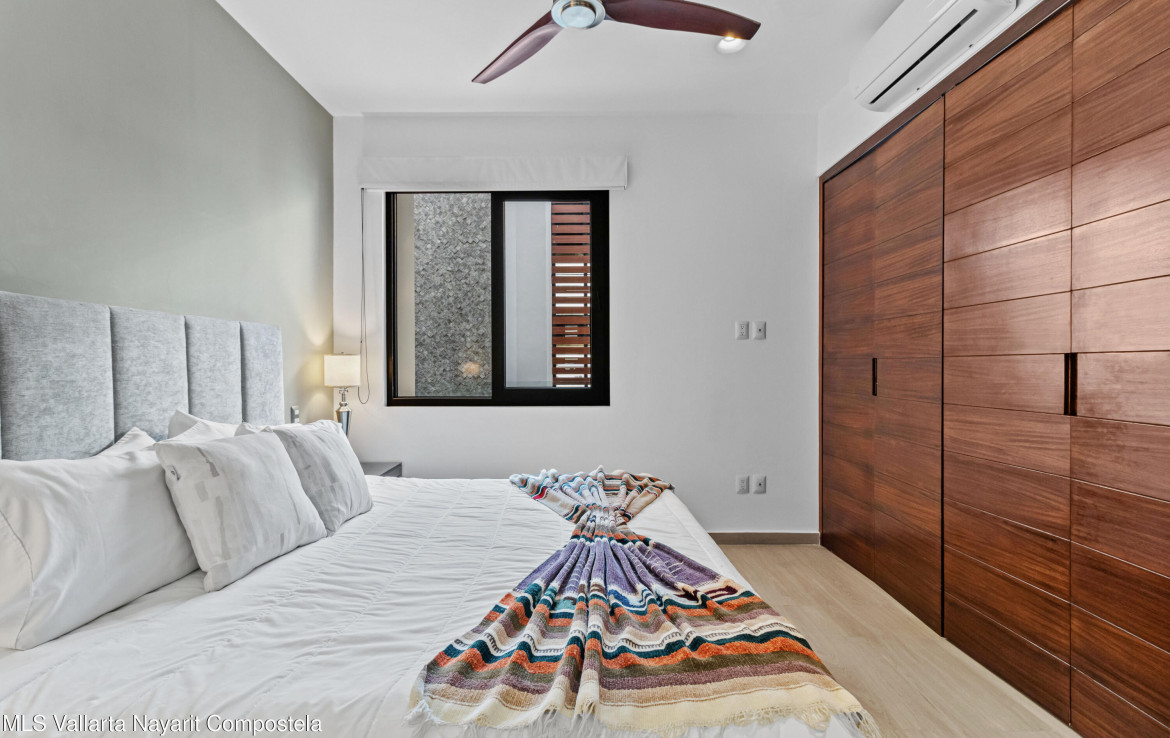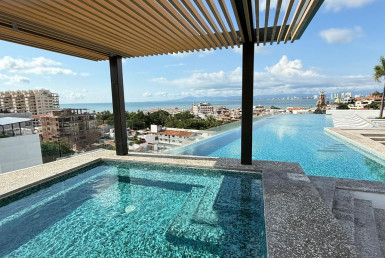 Luxurious and modern penthouse level unit in the amazing Loft 268 building, with 2 beds, 2 baths, each bedroom with spacious closets, dining area, living room, modern details and beautiful balcony with ocean view and great rental potential. The building has 24/7 security access control, 2 elevators, onsite operations manager, and one of the most amazing roof tops in PV. The building is walking distance to many great restaurants, bars, and clubs, and is only 2 blocks from Los Muertos Beach.