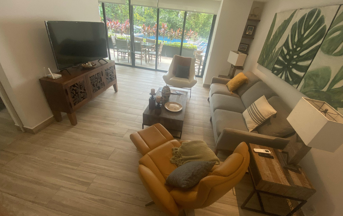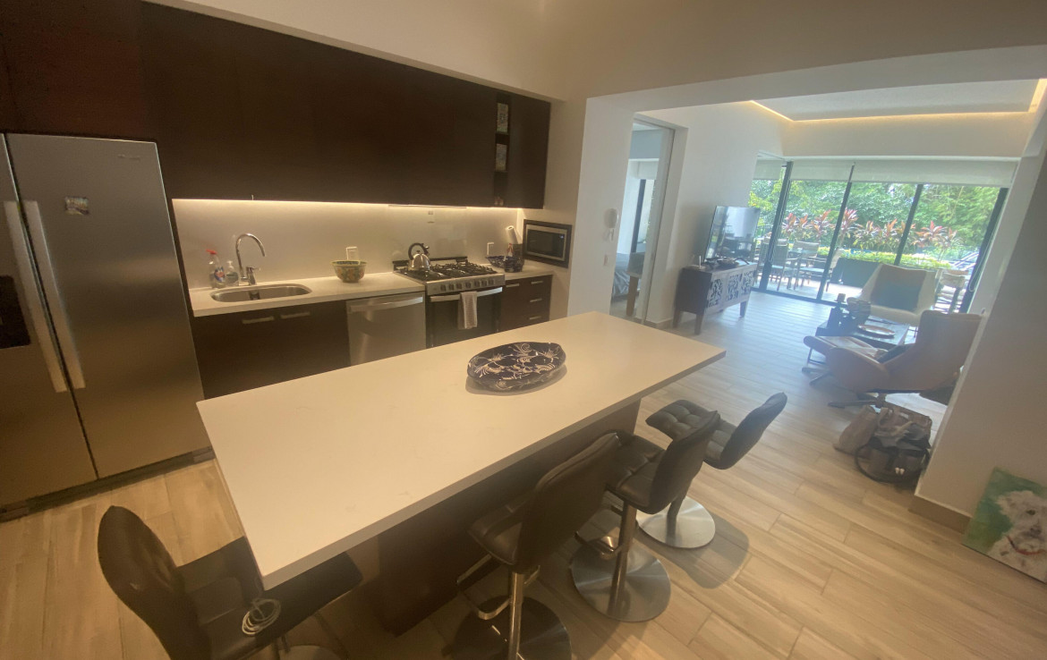 Welcome to your dream retreat in the prestigious Conchas Chinas neighborhood. This elegant unit offers two spacious bedrooms, two and a half bathrooms, a fully equipped kitchen, air conditioning, and an in-unit washer and dryer. Enjoy the large front terrace with a beautiful view of the infinity pool, perfect for relaxing or entertaining. A second rear terrace provides extra outdoor space and direct access to the deeded storage room, which could easily be converted into a private gym. Complete privacy is assured throughout. The building features a pool deck, parking, and secure storage, making this serene haven a rare opportunity to own a slice of paradise in highly sought-after Conchas Chinas.