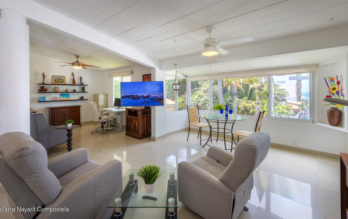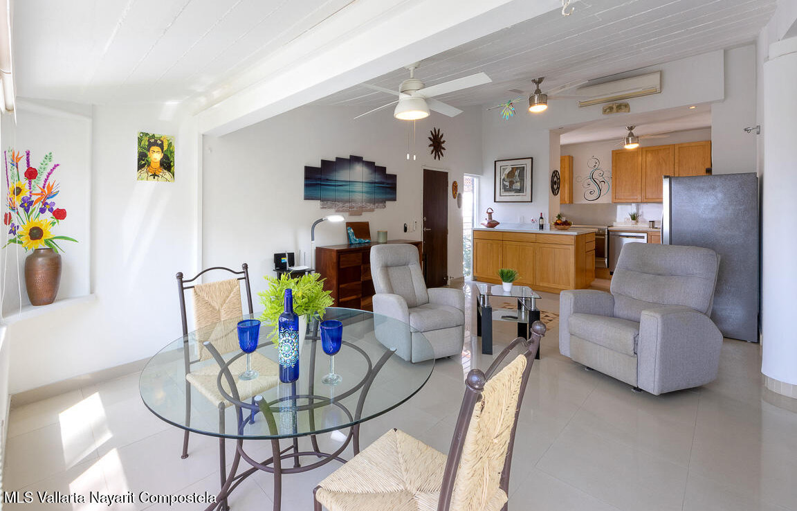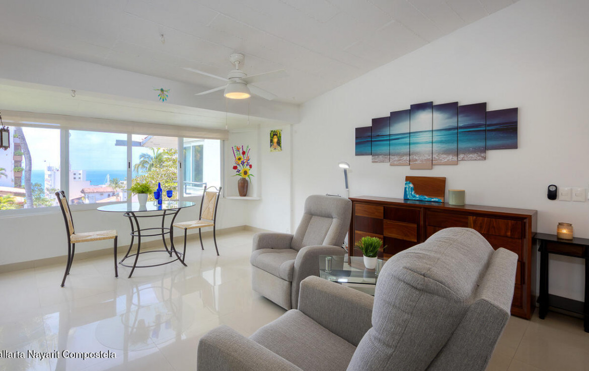 **NEW LARGE PRICE REDUCTION**Step into this renovated penthouse unit in the heart of Puerto Vallarta’s vibrant Romantic Zone! Boasting direct ocean views, this updated 1 bed / 1 bath condo features a spacious layout with vaulted ceilings, creating a bright, open atmosphere. Modern finishes add to the charm, blending comfort and convenience . Sold fully furnished, this move-in-ready gem is ideal as a vacation home or a turn-key rental property. Whether you seek a retreat or investment opportunity, this unit offers both comfort and convenience in an unbeatable location.Additional amenities include beautifully landscaped gardens, secure deeded parking inside the 24 hour security gate and a newly refreshed pool and sun deck. Don’t miss this unit situated close to everything in ZR!