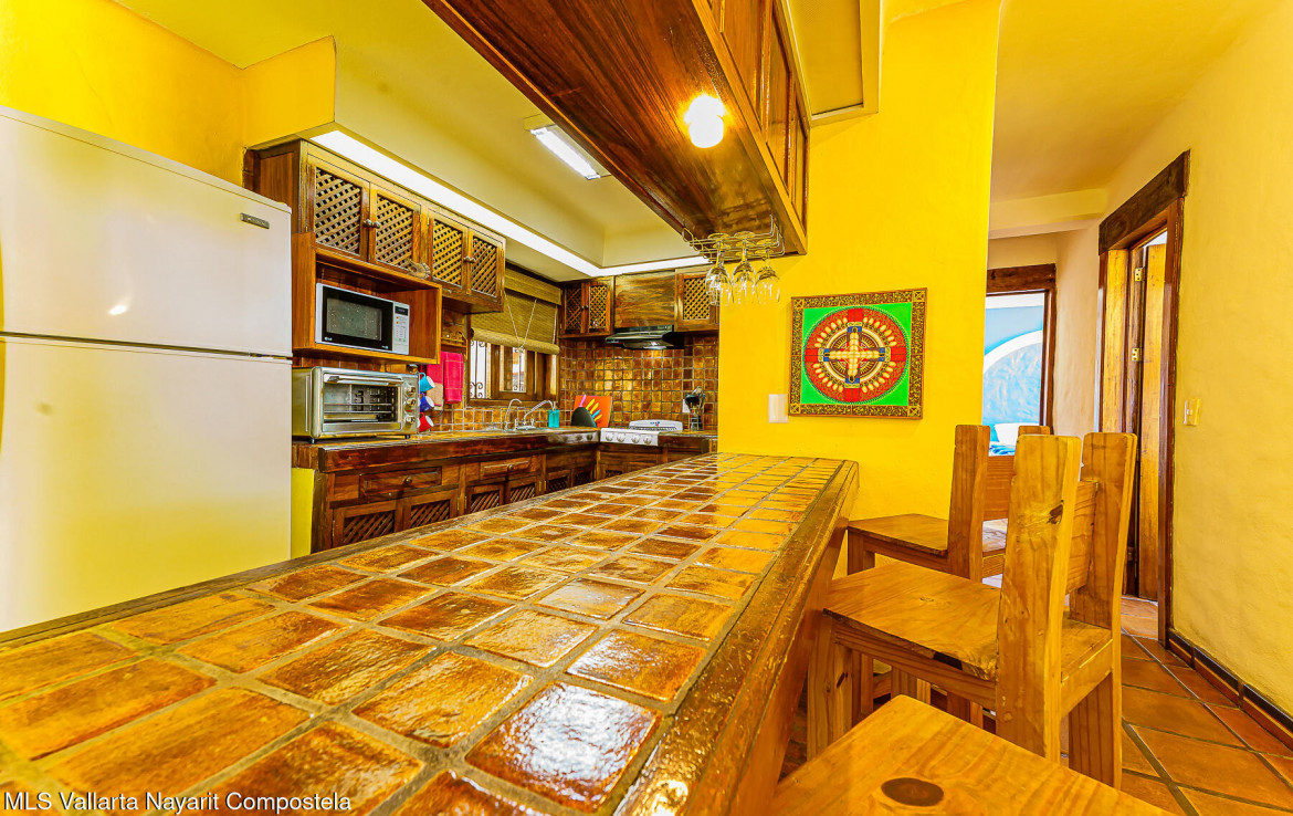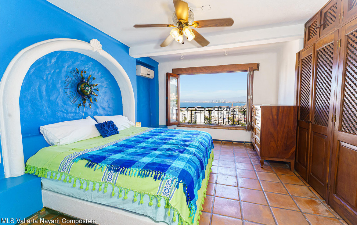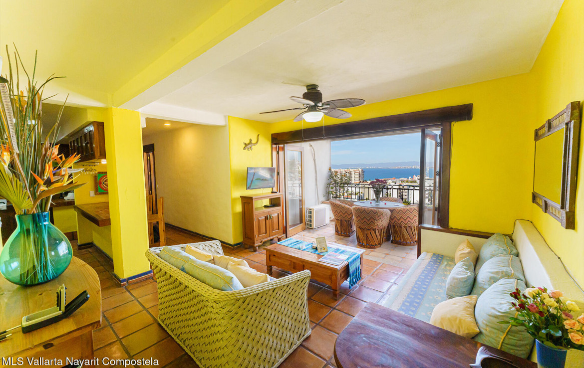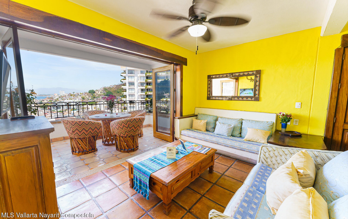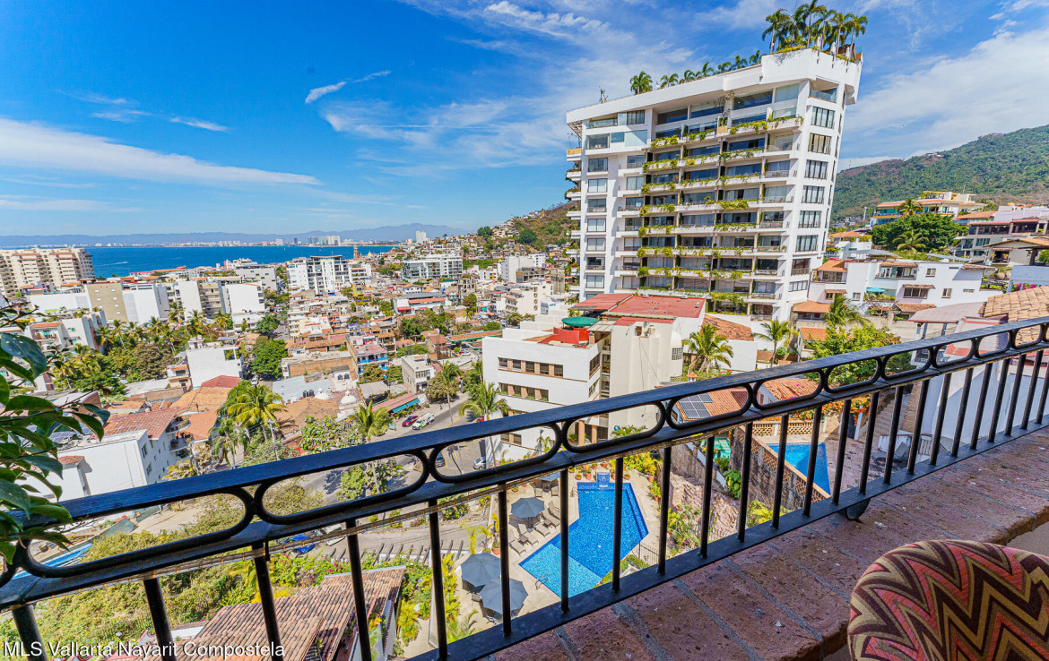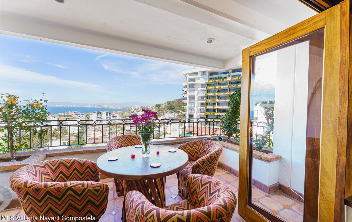 Welcome to Loma del Sol – A Rare Gem in the Heart of Puerto VallartaLoma del Sol renowned for its unobstructed panoramic views and exceptional location just steps from all the vibrant amenities of downtown.From the moment you enter, you’re greeted by the charm of Old Mexico, featuring authentic Saltillo tile floors and beautifully crafted Parota hardwood doors, closets, and kitchen cabinetry.The living area opens seamlessly to a spacious terrace through floor-to-ceiling Parota-framed bifold glass doors, creating the perfect indoor-outdoor flow and an ideal setting for relaxing or entertaining in the bistro-style seating area.There is no elevator in the building, stairs to pool 87. Only Condo in the building with direct access from the covered parking area.