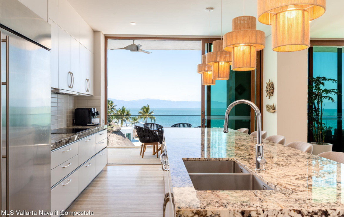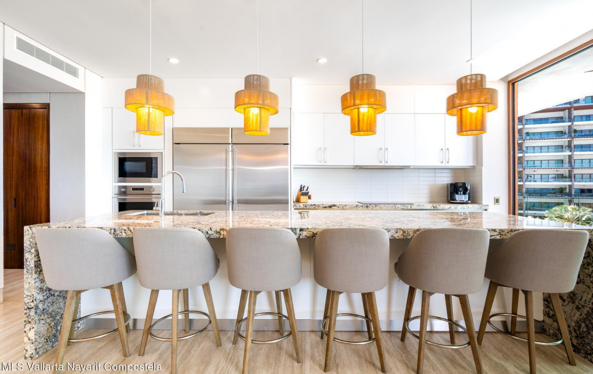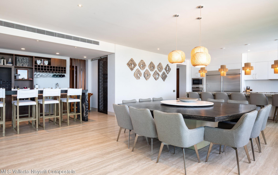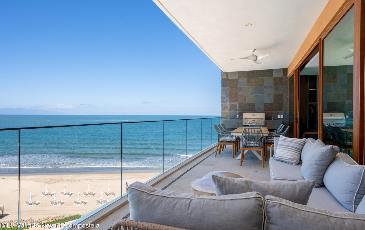 LUMA, la comunidad mas exclusiva frente al mar en Nuevo Vallarta. Ubicada en el piso 4 Torre 5, ofrece espectaculares vistas de 180 a la bahia,365 atardeceres, hermosos amaneceres, vista hacia La Cruz, Marietas, Puerto Vallarta y las hermosas montanas, en temporada podras ver algunas ballenas desde la terraza. Cuenta con techos de 2.90 m. de alto, amplias terrazas, espacios generosos en todas sus areas y recamaras, elegante carpinteria de Parota. Recamara principal disfruta de hermosas vistas al mar. Luma ofrece amenidades de primera clase, mas de 110 metros de frente de playa, 2 decks de playa, concierge, area de ninos, mini golf, cancha de padel, bistro, gimnasio con vista al mar, spa, seguridad 24 horas, elevadores, jardin, 2000 m2 de alberca infinity climatizada y los privilegios