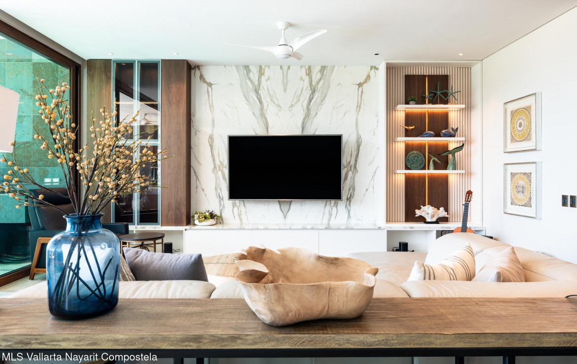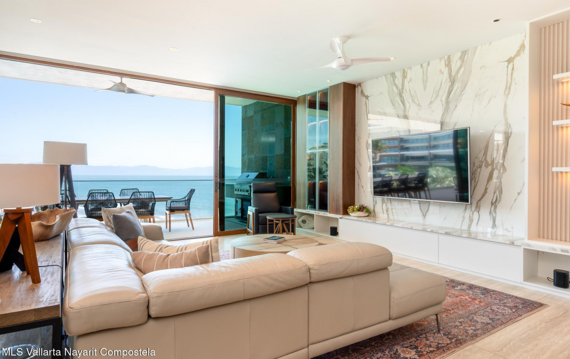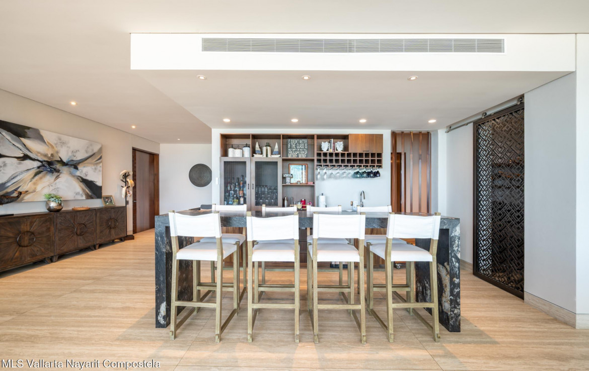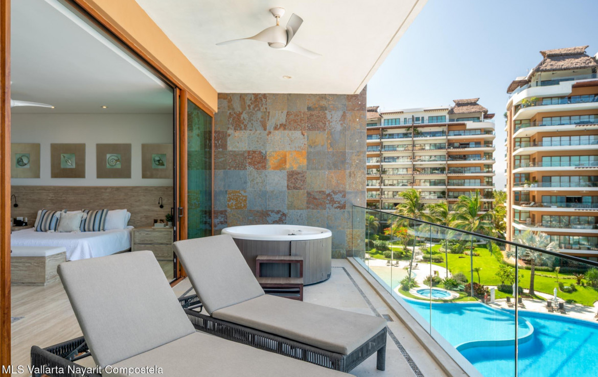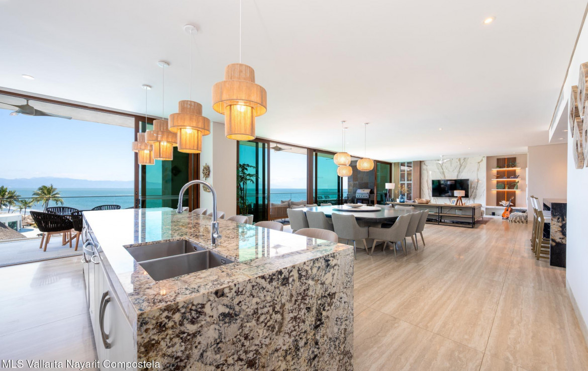 LUMA, la comunidad mas exclusiva frente al mar en Nuevo Vallarta. Ubicada en el piso 4 Torre 5, ofrece espectaculares vistas de 180 a la bahia,365 atardeceres, hermosos amaneceres, vista hacia La Cruz, Marietas, Puerto Vallarta y las hermosas montanas, en temporada podras ver algunas ballenas desde la terraza. Cuenta con techos de 2.90 m. de alto, amplias terrazas, espacios generosos en todas sus areas y recamaras, elegante carpinteria de Parota. Recamara principal disfruta de hermosas vistas al mar. Luma ofrece amenidades de primera clase, mas de 110 metros de frente de playa, 2 decks de playa, concierge, area de ninos, mini golf, cancha de padel, bistro, gimnasio con vista al mar, spa, seguridad 24 horas, elevadores, jardin, 2000 m2 de alberca infinity climatizada y los privilegios