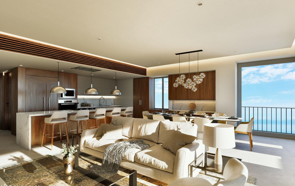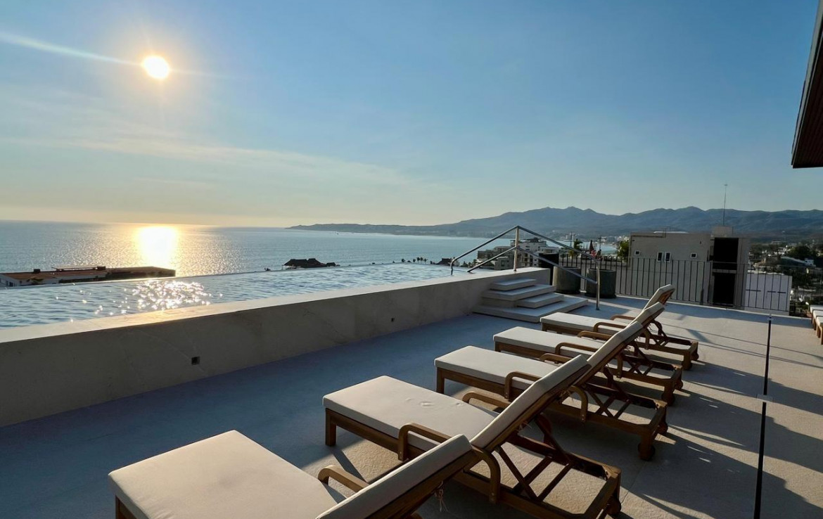 This is a prime corner PENTHOUSE just released in the advanced construction of Oceana Bucerias at the highest point of Zona Dorada in Bucerias. It’s one of seven ELITE COLLECTION units that are set apart by a large list of upgrades and features included in the purchase price to complement the high-grade core construction and the outstanding amenities such as a 115 foot rooftop panoramic pool with lounge areas that enjoy sunrise and sunset views as well as the entire rim of Banderas Bay. Over 2,900 square-feet of this beautifully laid-out corner plan include two ocean-view bedrooms, the luxury of four full bathrooms and will have double-pane windows with LOW-E technology; premium brand appliances including wine fridge and barbecue; upgraded kitchen…